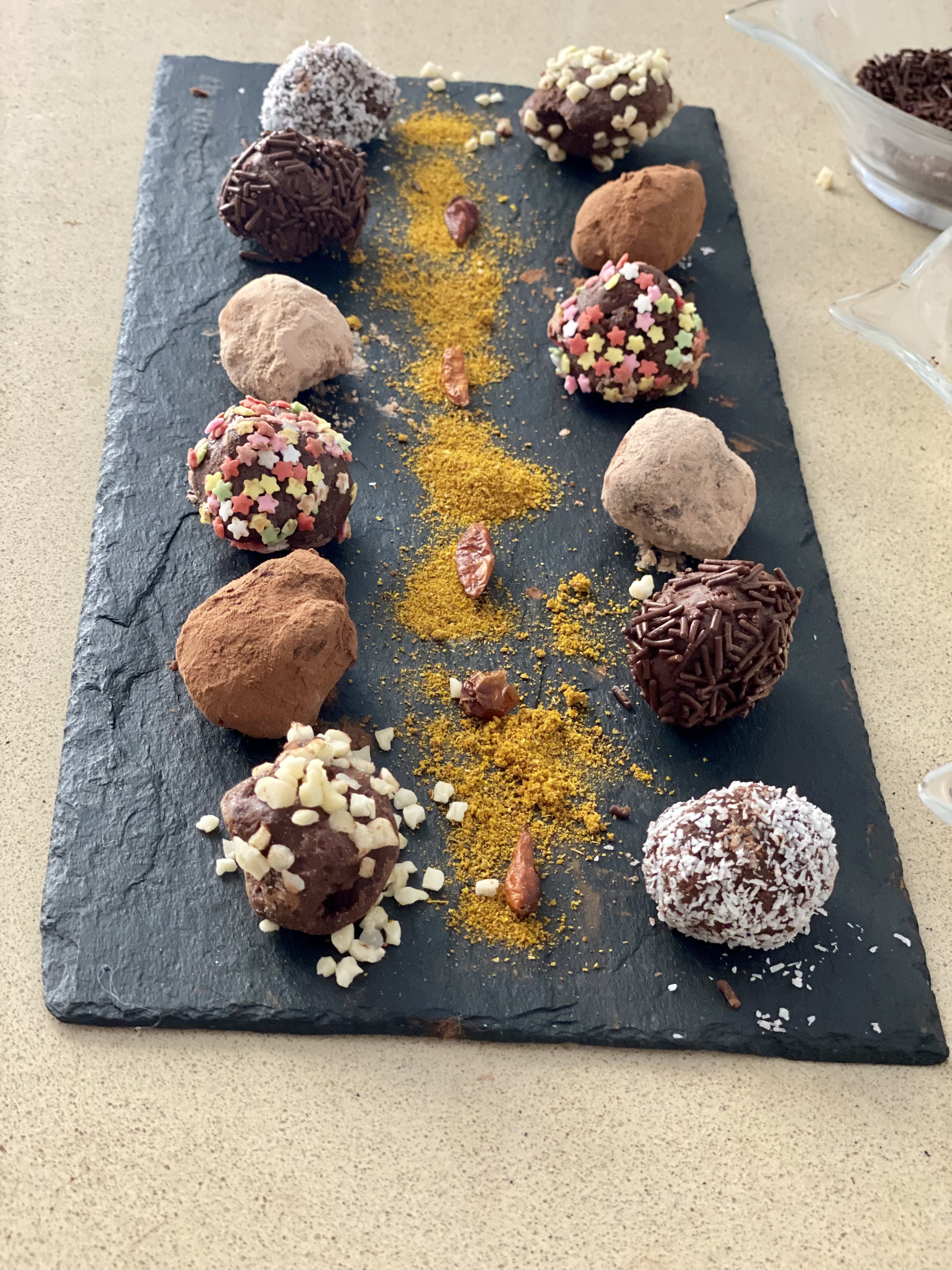 - Con una cucharadita, coja pequeñas porciones de chocolate y, con los dedos, haga forma de trufa. Reboce las trufas en cacao en polvo y otras en cacao puro y colóquelas en una bandeja. Resérvalas en el frigorífico hasta el momento de servirlas.