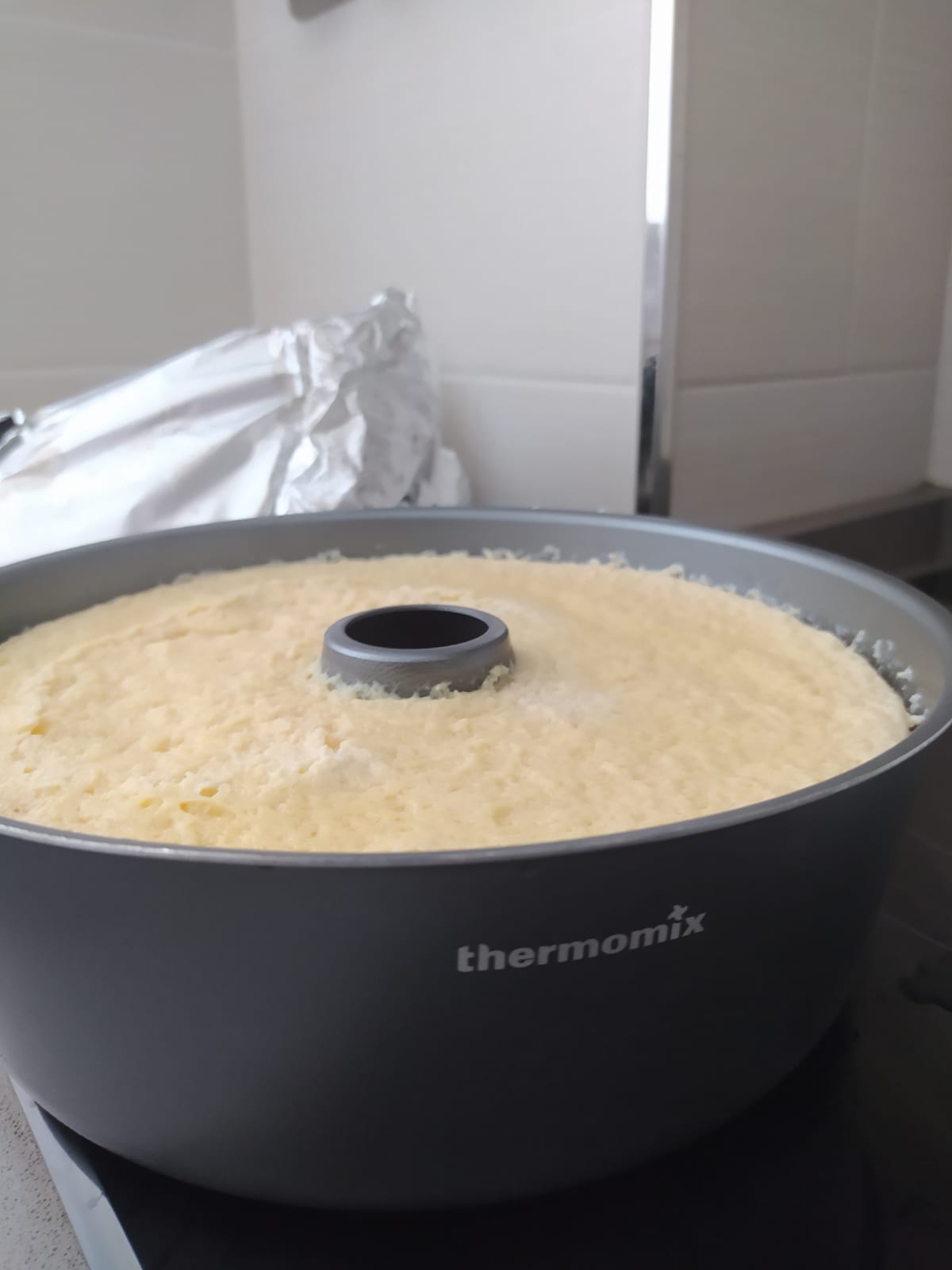 - Poner el molde en el Varoma, tapado con film o aluminio. Encima ponle unas servilletas para que quiten el exceso de humedad y tapar con la tapadera Varoma. 50 min/Varoma/vel 2.