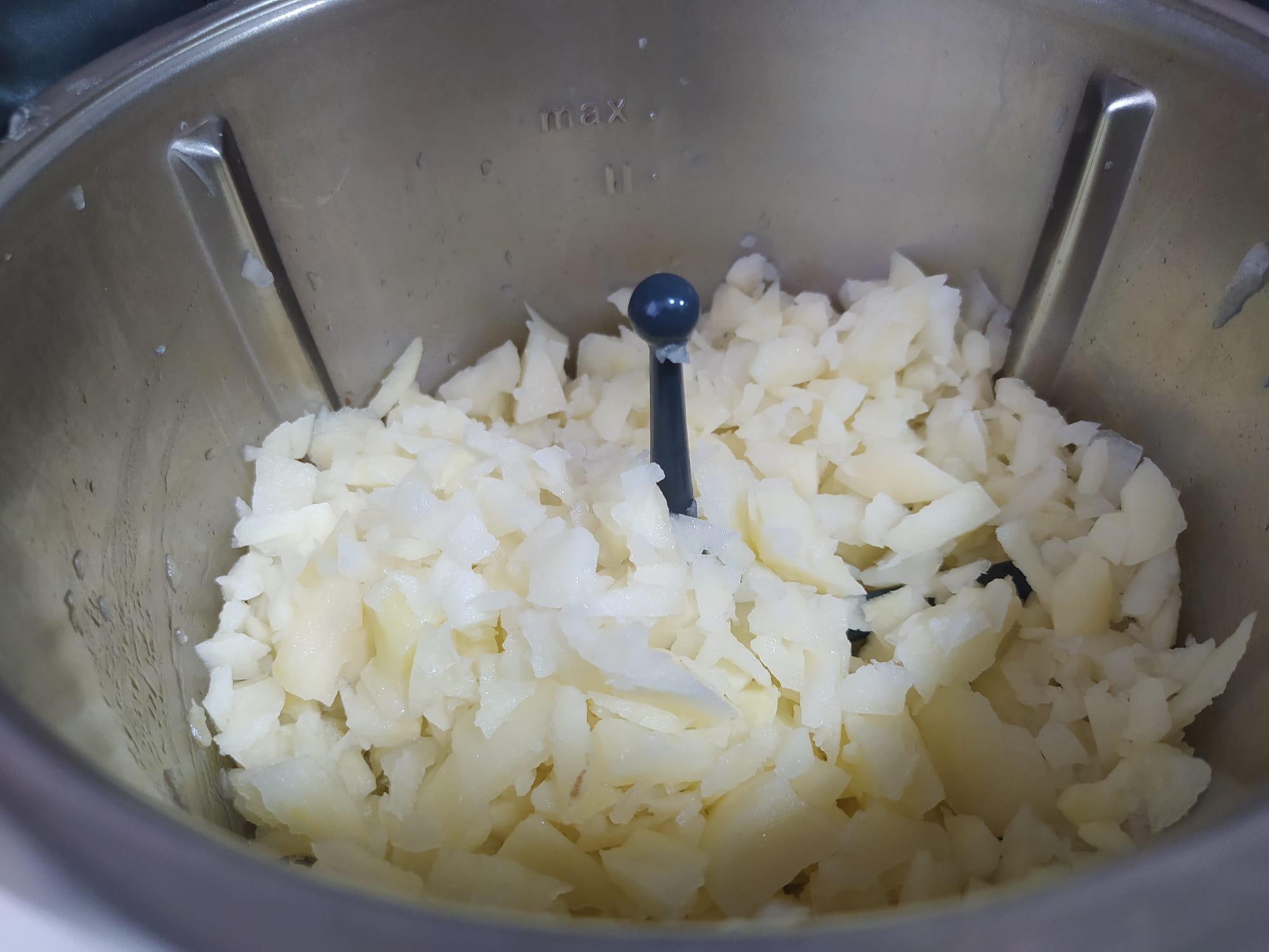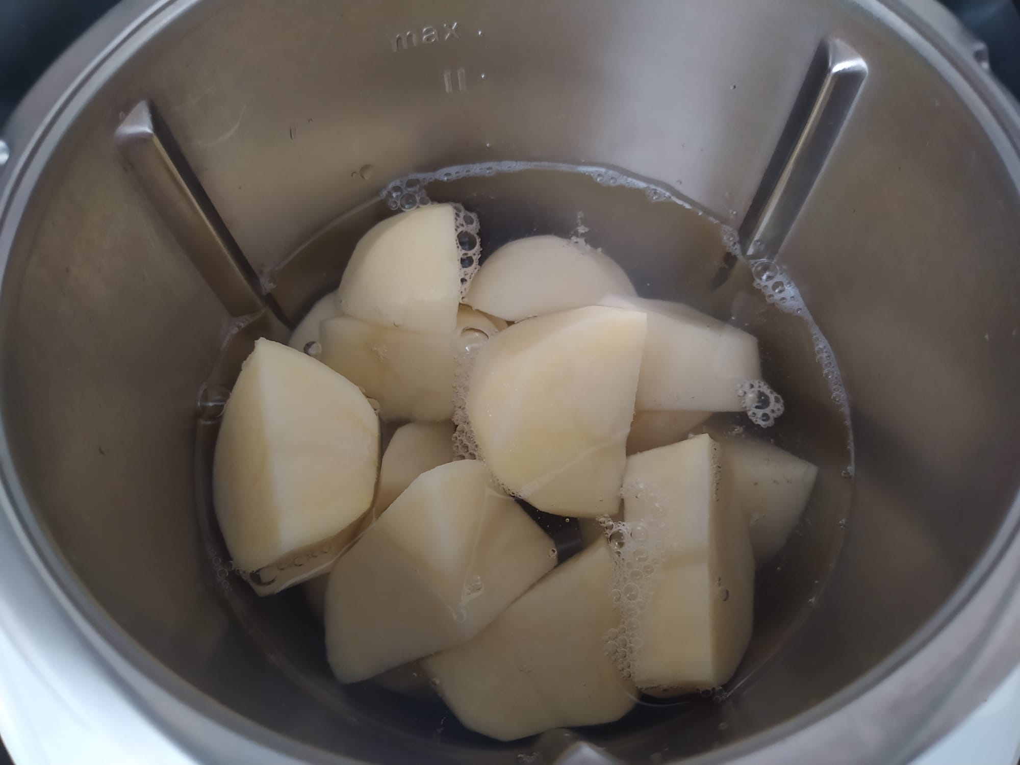 - Pon las patatas y los 700 de agua en el vaso y trocea 2 seg/vel 5.