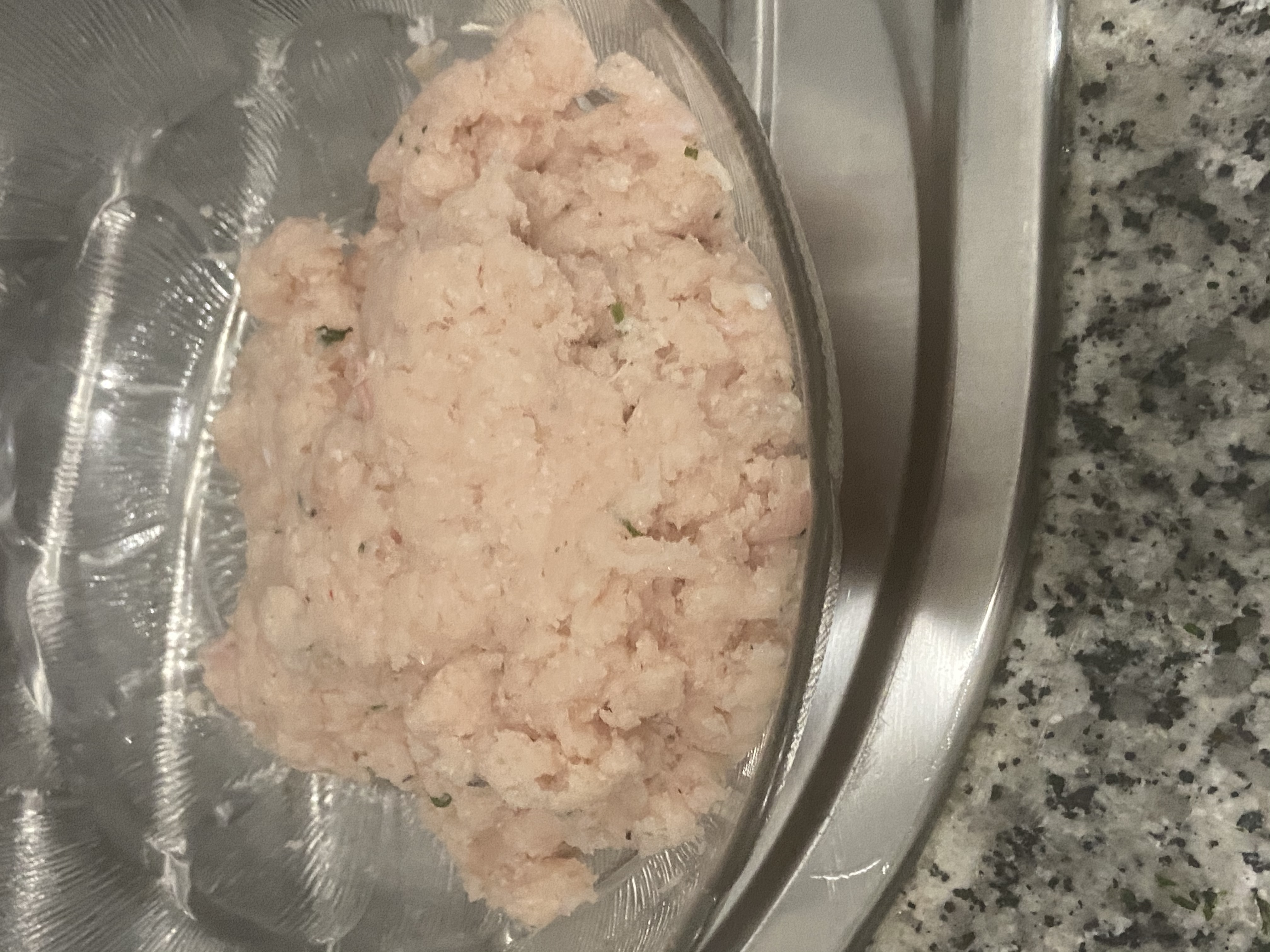 - Pon en el vaso los trozos de pechuga de pollo o pavo, el parmesano rallado, el perejil, una cucharadita de sal ,un pellizco de pimienta, la nuez moscada y tritura 10seg/vel 5.