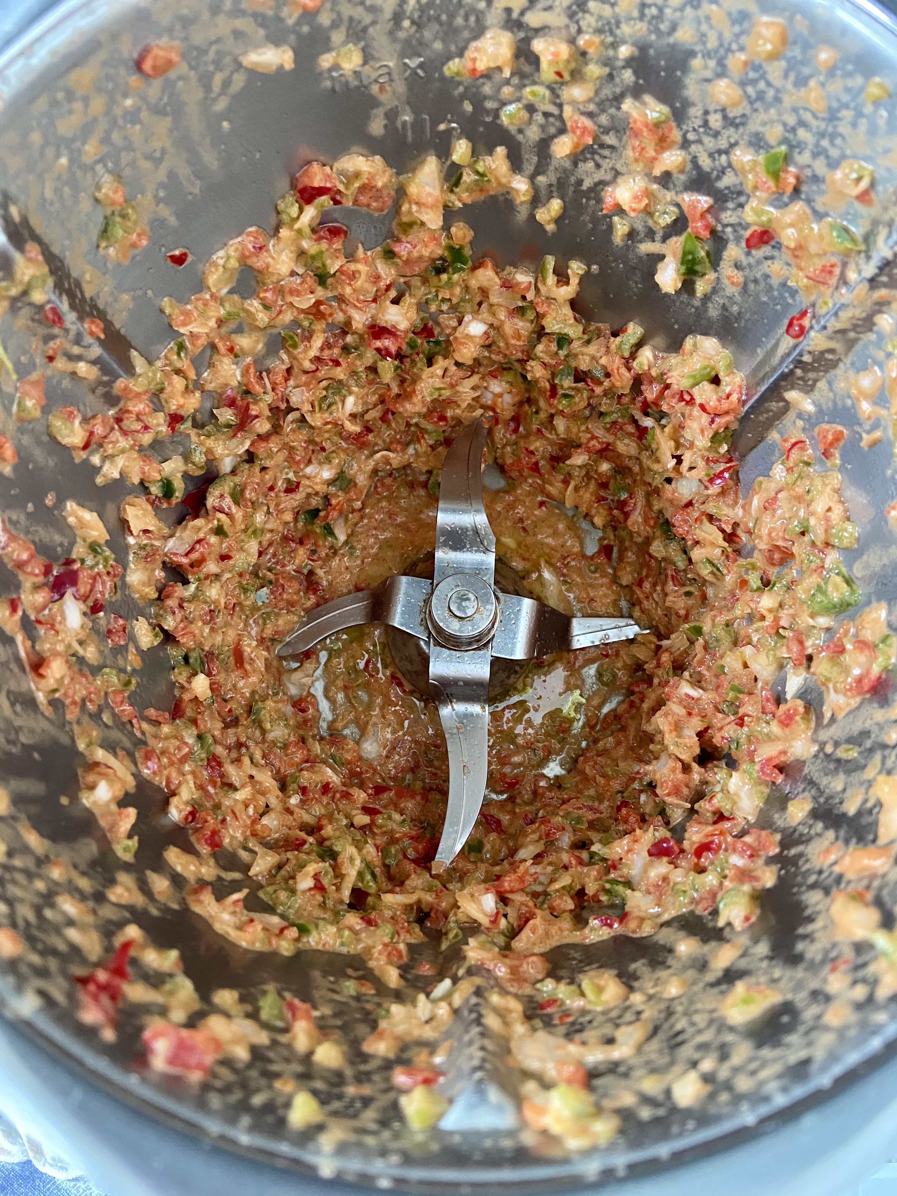 3, Tritura 7 seg. Velocidad 5. (Este paso para mí es la gran diferencia con la receta tradicional, ya que, al trituras las verduras, mis niños se la comen de maravilla!)