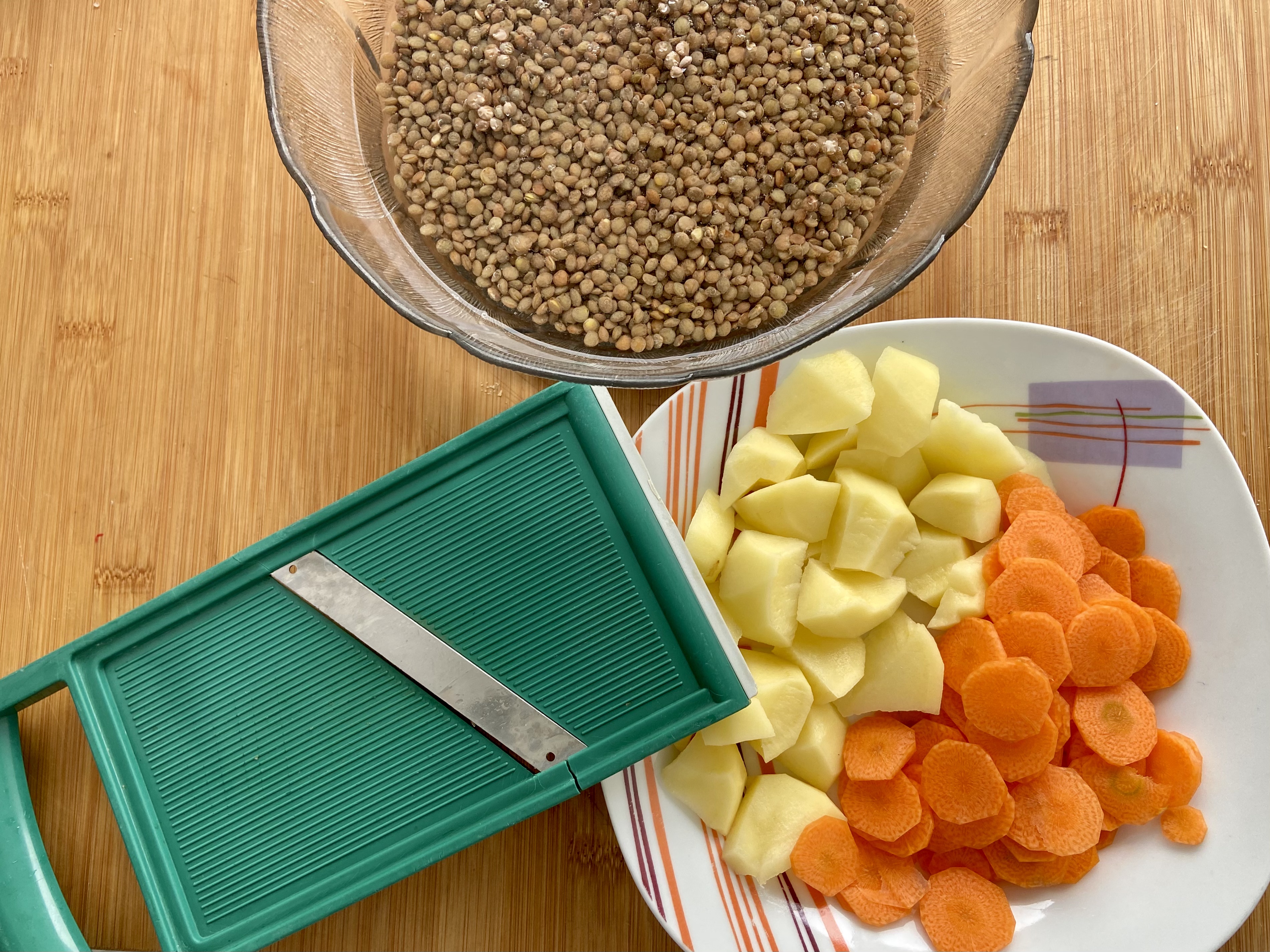 - 1 pastilla de caldo de verduras (en vez de caldo de pollo, pero como prefieras).