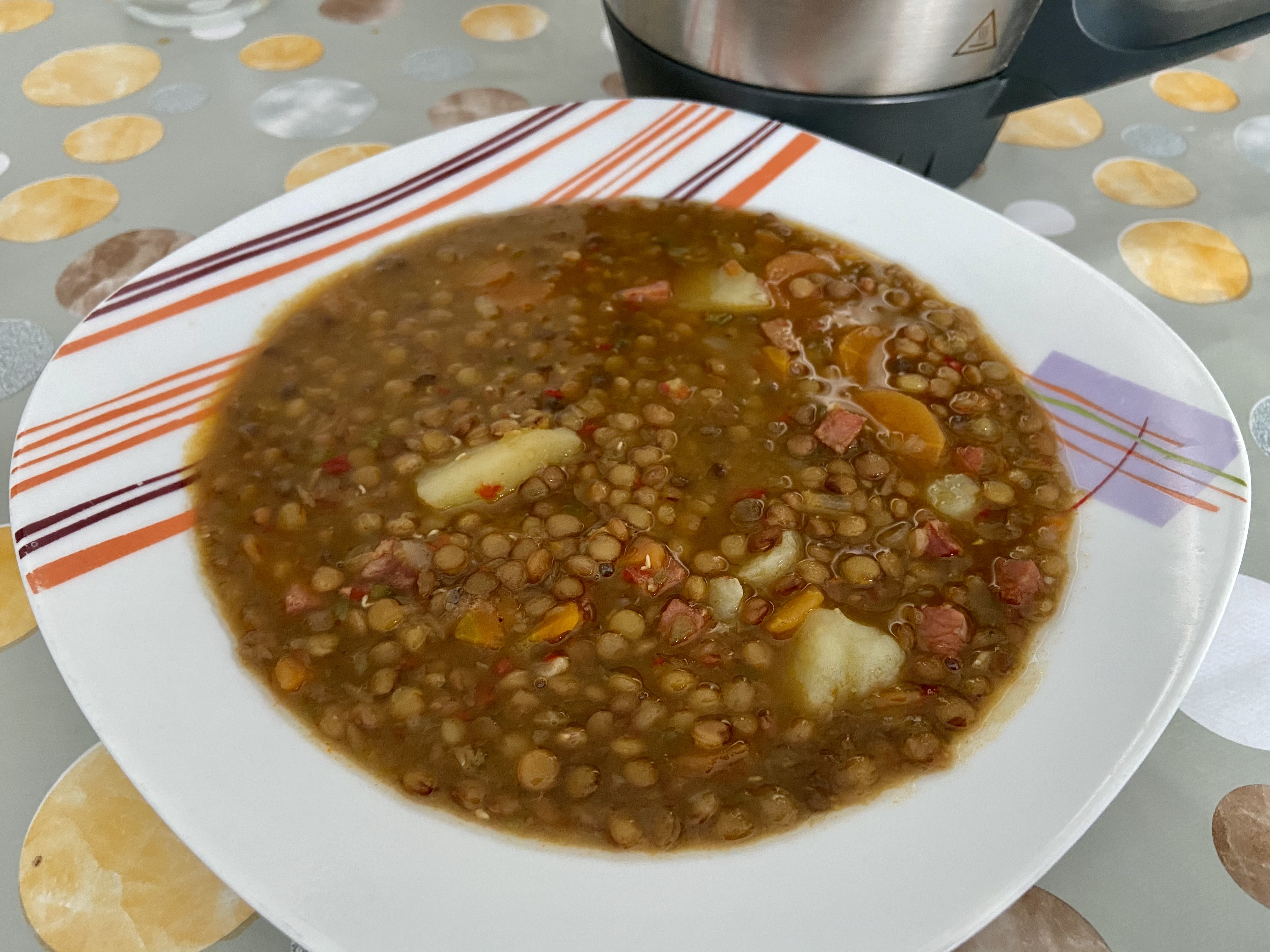 La base de mi receta es modificar esta receta de Cookidoo®: Lentejas estofadas https://cookidoo.es/recipes/recipe/es-ES/r55696.