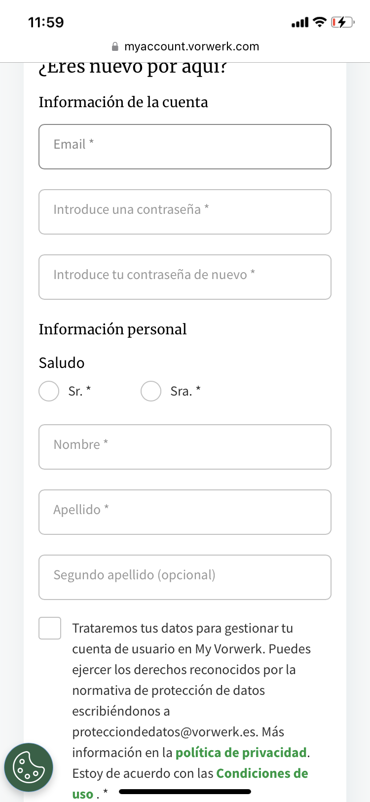 - Rellena los datos en el registro