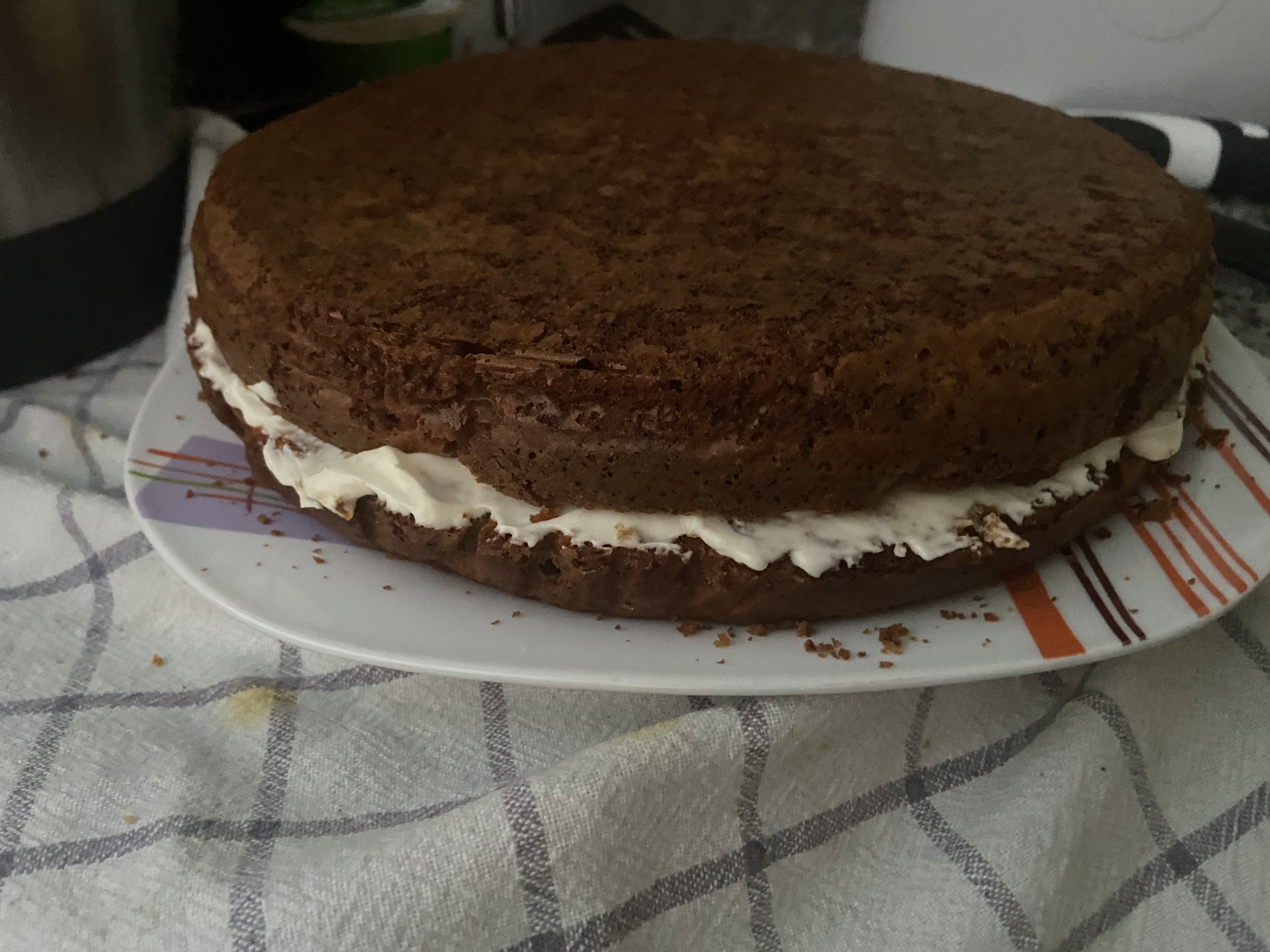 - Si el bizcocho había subido demasiado por el centro, te recomiendo girarlo de forma que quede la parte plana hacia arriba. Será más sencillo.