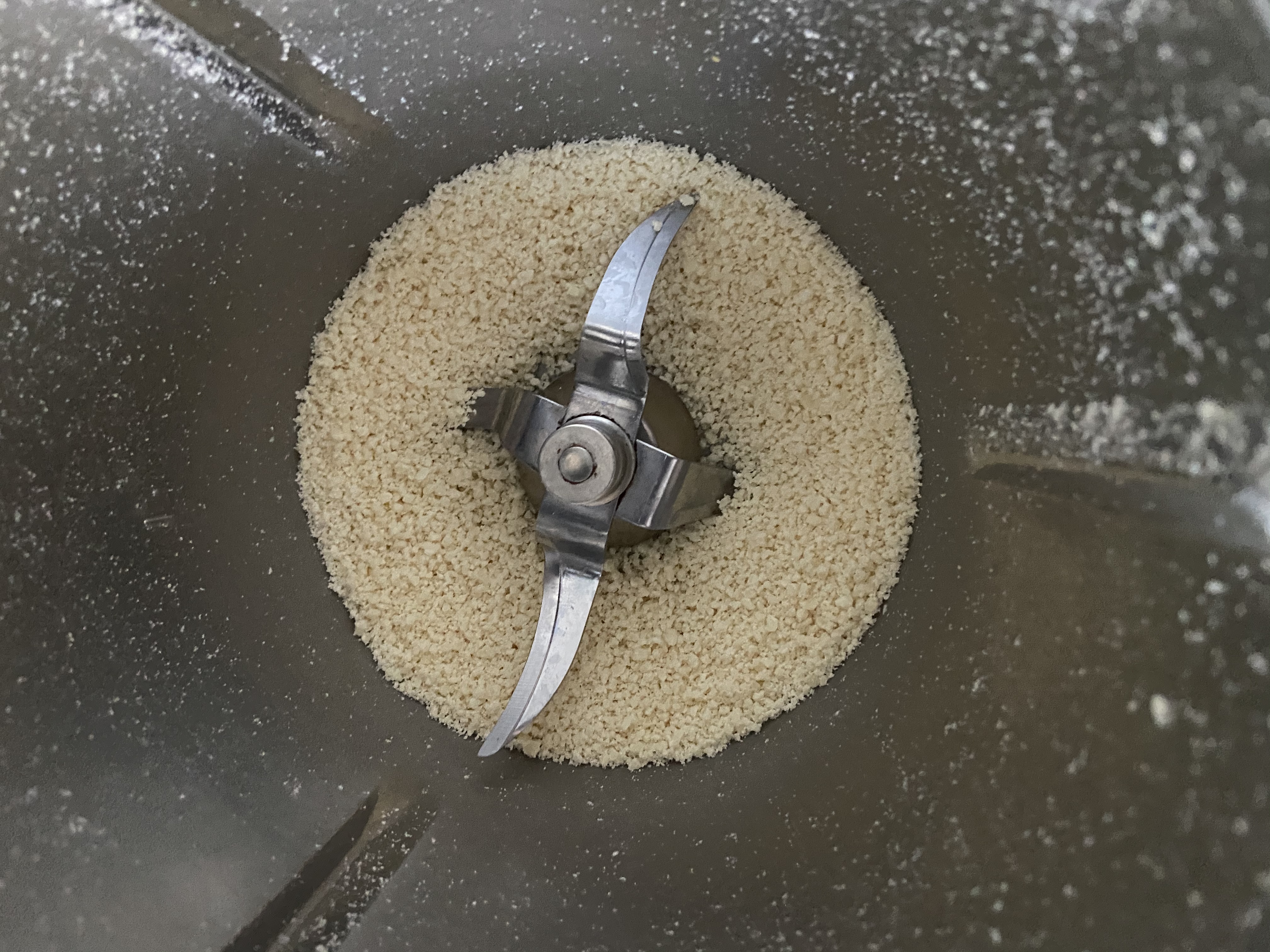 - Incorpora la harina, el bicarbonato, levadura química, canela, nuez moscada, la sal (puedes modificar cantidades de las especias si quisieras darle más o menos toque de ese sabor) y mezclar 3 seg/ vel 6. Si ves que ha quedado parte sin mezclar puedes volver a programarlo igual o terminar de mezclar con la espátula.