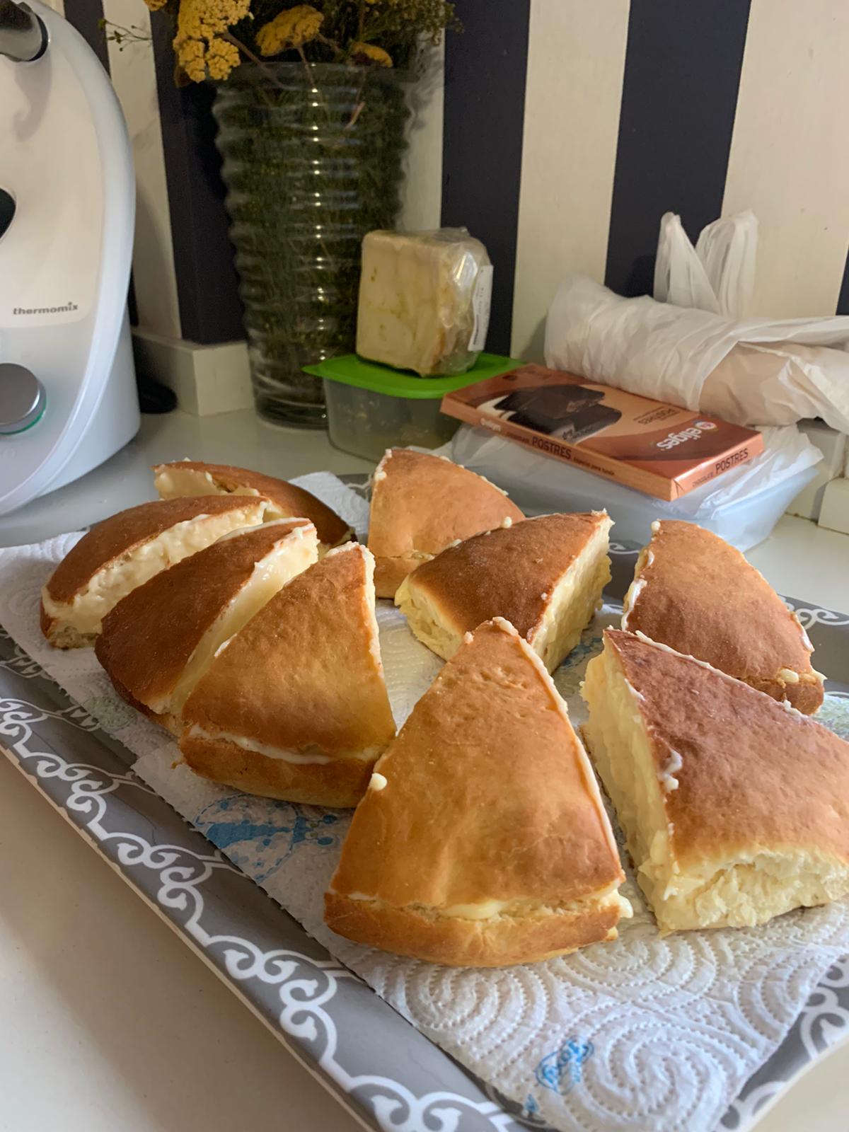 Cortamos en 8 porciones cada círculo y una a una, untamos con crema pastelera las dos caras externas.