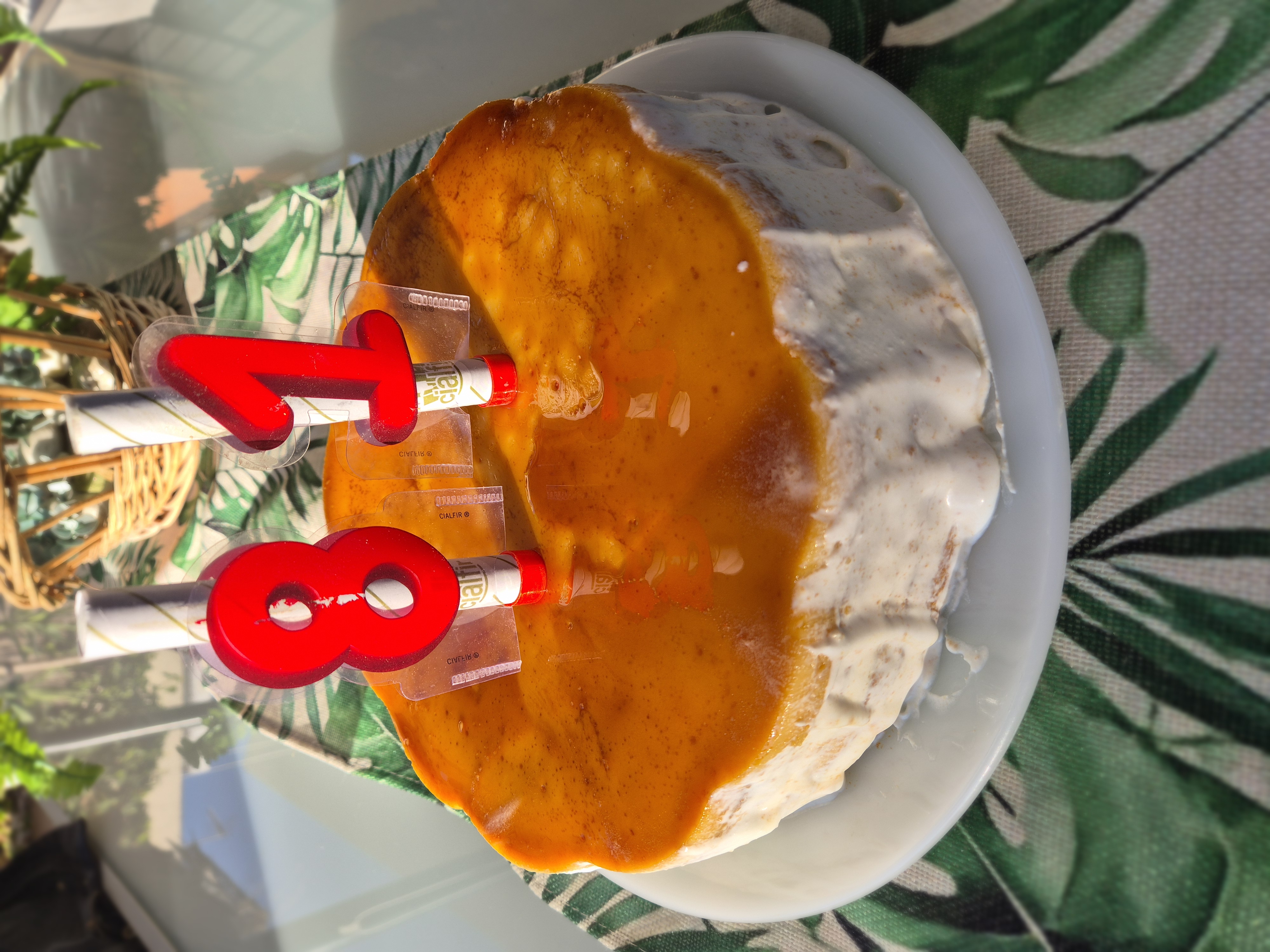 Hoy con motivo de un cumpleaños especial, hice esta tarta de Tocino de Cielo, ya en pandemia la hice en nuestros directos de Facebook, pero a petición de muchos clientes la comparto por aquí, para que la podais tener en recetas creadas.