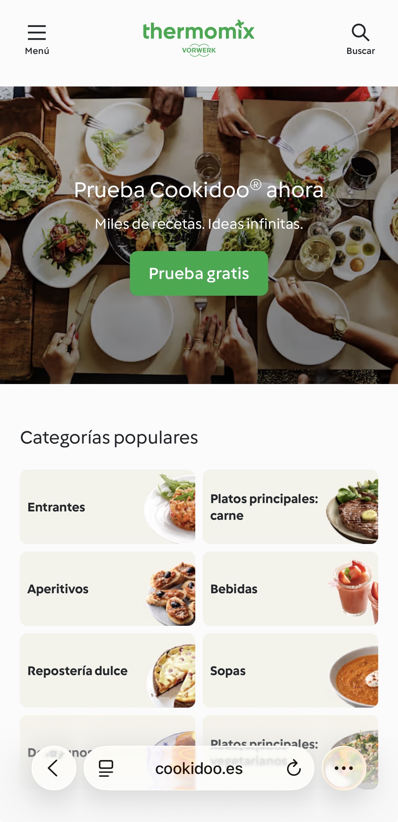 - Abre tu navegador favorito (Google Chrome, Safari, Firefox…) y escribe en la barra de direcciones: www.cookidoo.es