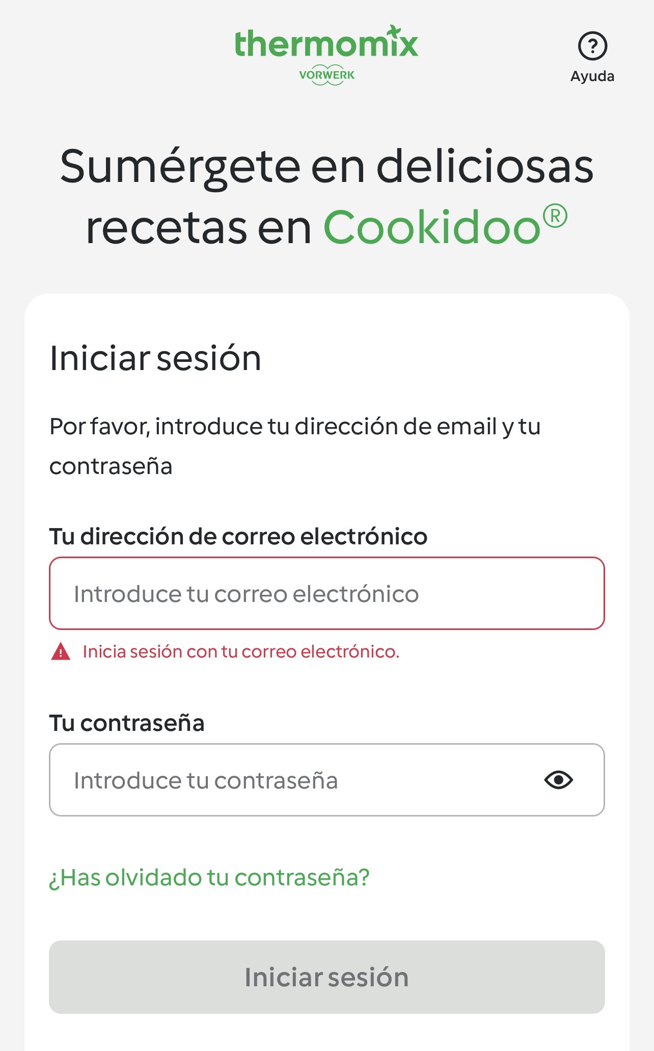 - Suscripción mensual (solo iOS): Acceso completo a Cookidoo® por 6€/mes. Esta suscripción solo está disponible desde la App Store (precio gestionado por Apple).