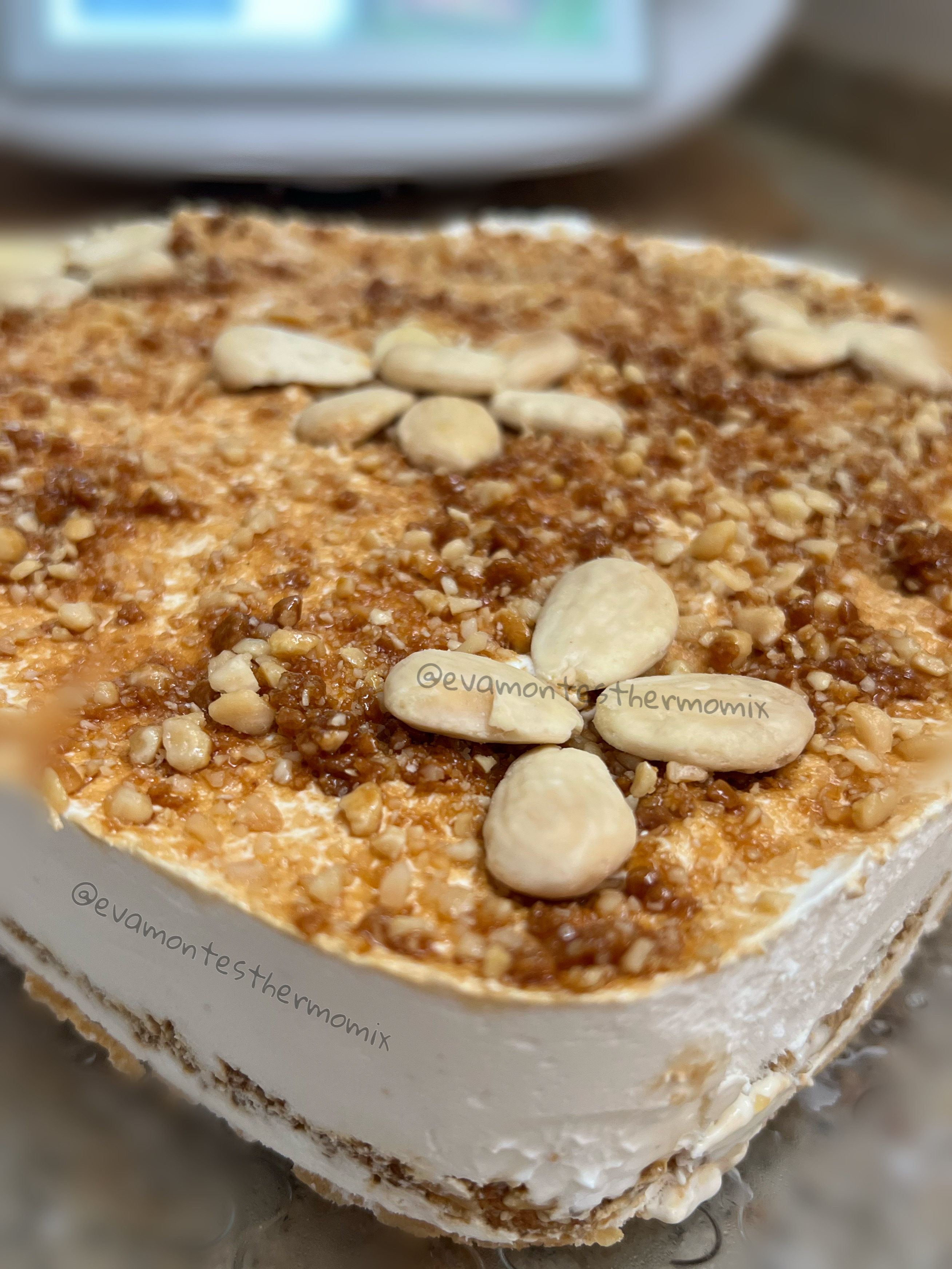 Esta tarta es una modificación de una que existe en Cookidoo® llamada Tarta helada de nata con praliné de almendras.