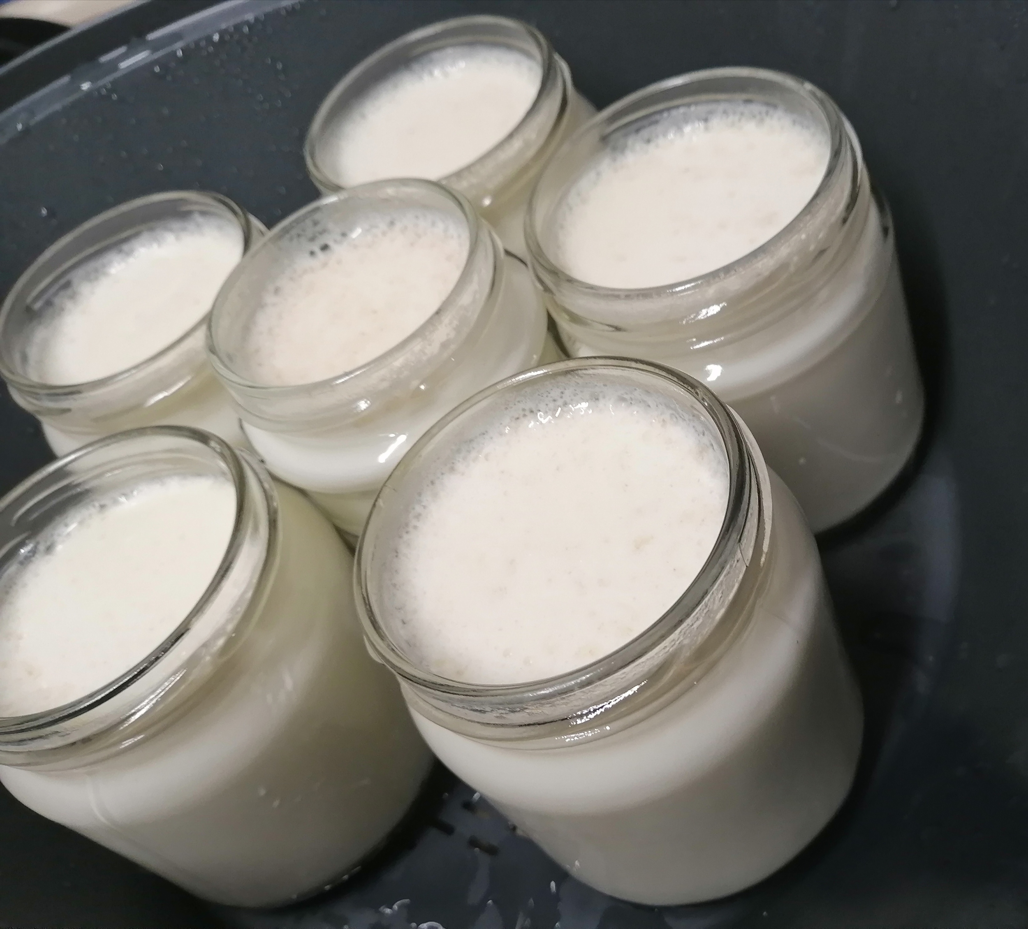 Thx31: Poner la mezcla en los vasitos y cubrir bien con toallas o paños de cocina durante 12 horas para que fermenten. Cuidar que no estén expuestos en ningún lugar donde pueda haber corriente de aire y lo más templado posible (cerca de algún aparato eléctrico que desprenda algo de calor es una buena opción). Una vez pasado el tiempo, retiramos los paños y reservamos en el frigorífico hasta el momento de servir