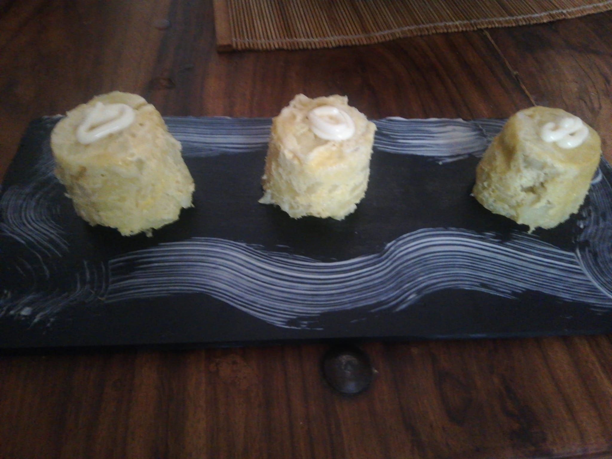 - Repartimos la mezcla en flaneras previamente pintadas de aceite de oliva. Tapamos con papel aluminio y las colocamos en el recipiente varoma. Tapamos el varoma y reservamos.
