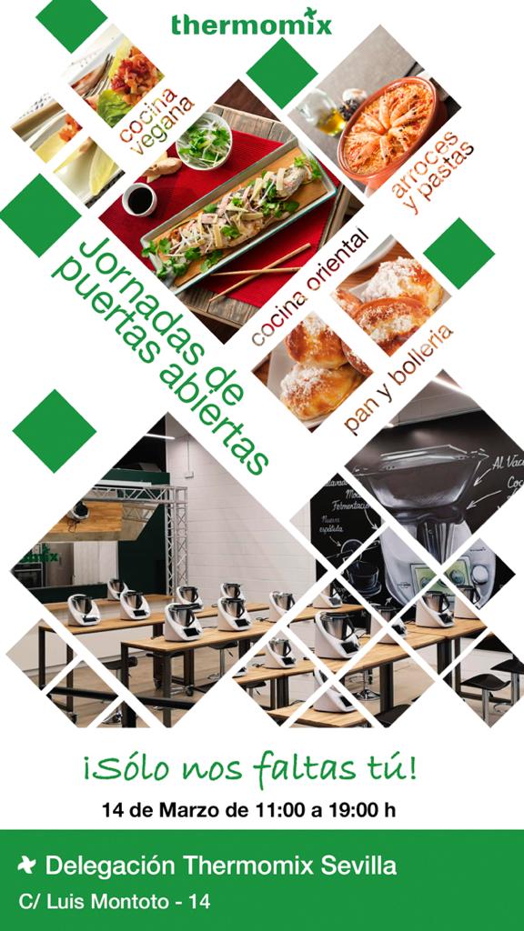 hola, soy juani borrero, agente comercial de thermomix® sevilla, te invito a las jornadas de puertas abiertas el sábado 14 de marzo en la delegacion de thermomix la Florida. El horario es de 11:00 a 19:00. Vivirás una experiencia muy agradable viendo y saboreando lo cocinado en la nueva thermomix® TM6.