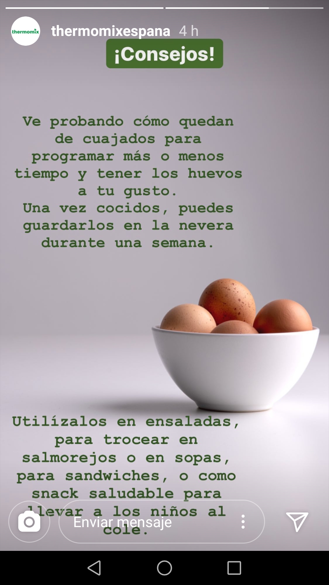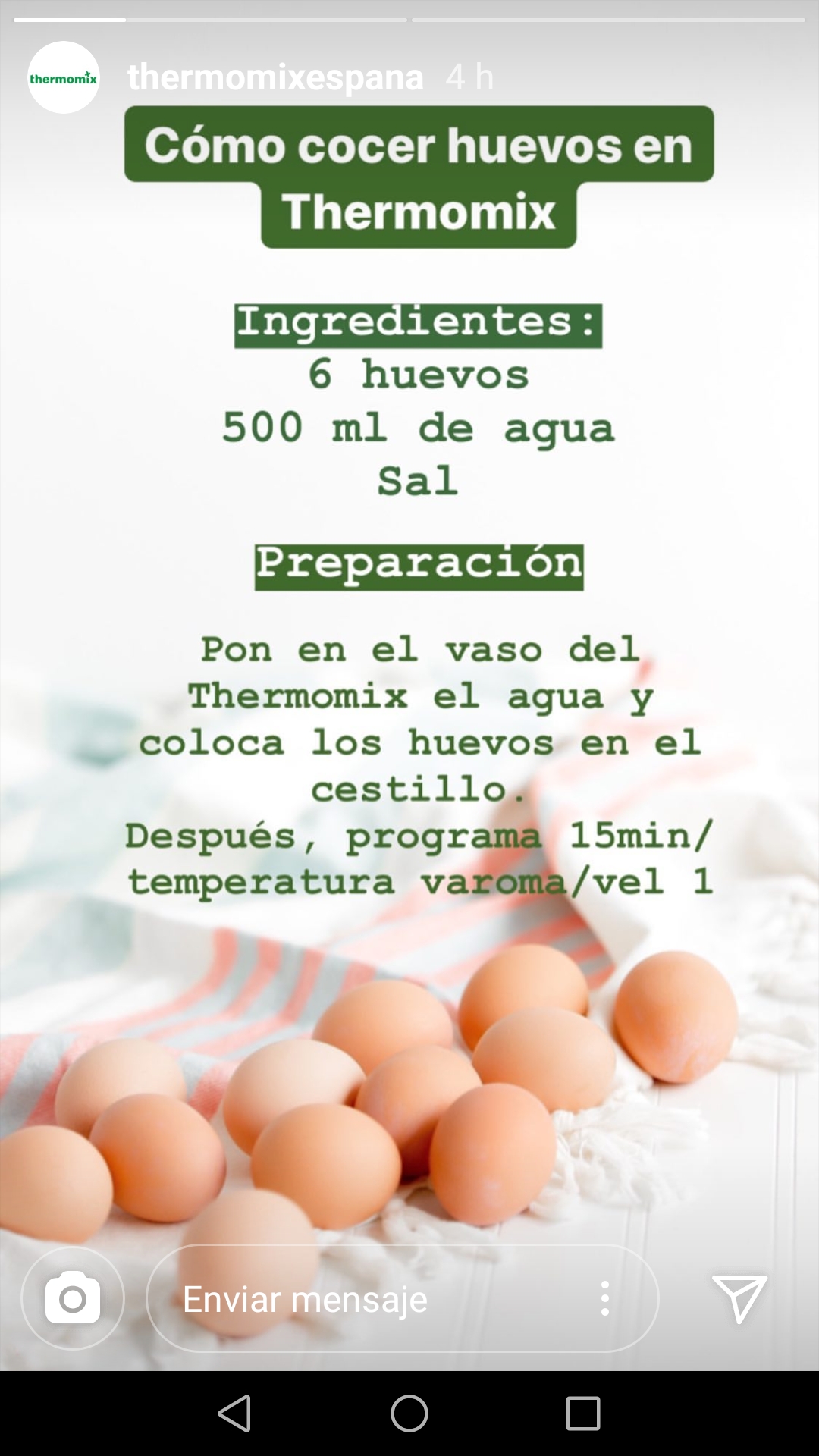 Dependiendo de como nos gusten de cuajados variaremos el tiempo reduciendo o aumentando unos minutos, perfectos para ensaladas, sandwiches, sopas, gazpachos, salmorejos... Ya no tendremos que estar pendiente de que hemos puesto huevos a cocer y se nos queden sin agua.. quemen. . Y todas éstas cosas que pasan porque nos despistamos... Nuestro thermomix nos avisará cuando estén listos y mientras nosotros podemos seguir con nuestras cosas con total tranquilidad.