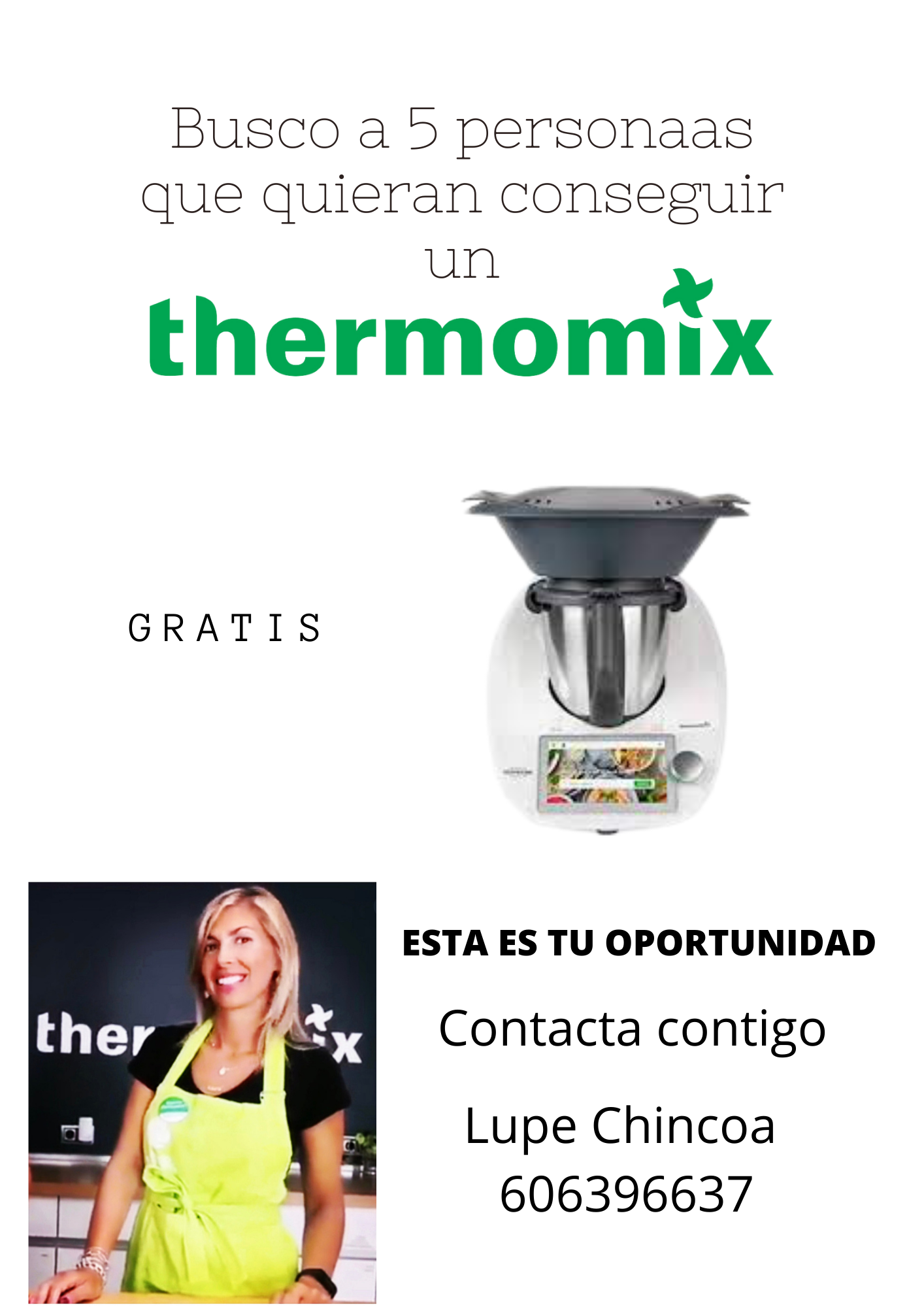 Hola!! Soy Lupe Chincoa, Team Leader de Thermomix® , quieres o necesitas ayuda? te gustaría venirte a mi equipo? estaré encantada de atenderle, informarle, solucionar cualquier duda de las ediciones y novedades que tenemos actualmente, os invito a descubrir este maravilloso mundo y demostrarle una cocina fácil, rápida, saludable, creativa y miles de ventajas más que tiene nuestra thermomix. No dudes ponerte en contacto conmigo.. No te arrepentirás!