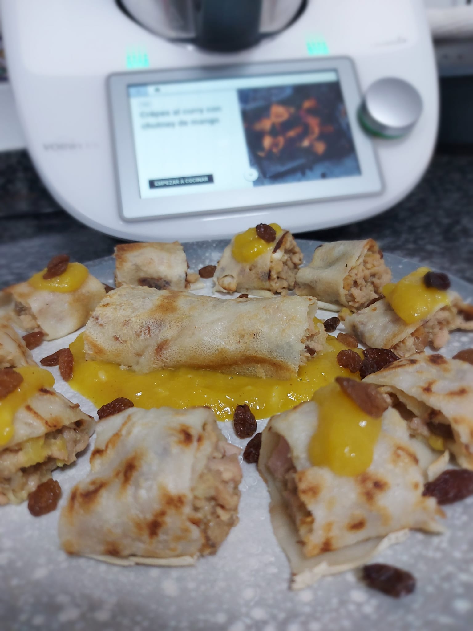 Hoy os traigo una receta fantástica!!! Con thermomix no hay receta dificil, todo será muy sencillo de hacer. Es una receta que podeis encontrar pinchando aquí Chutney de mango. Es una especie de "salsa" con sabores dulces y picantes. Tomarla solo puede no gustar, pero junto a las crepes está buenísima.