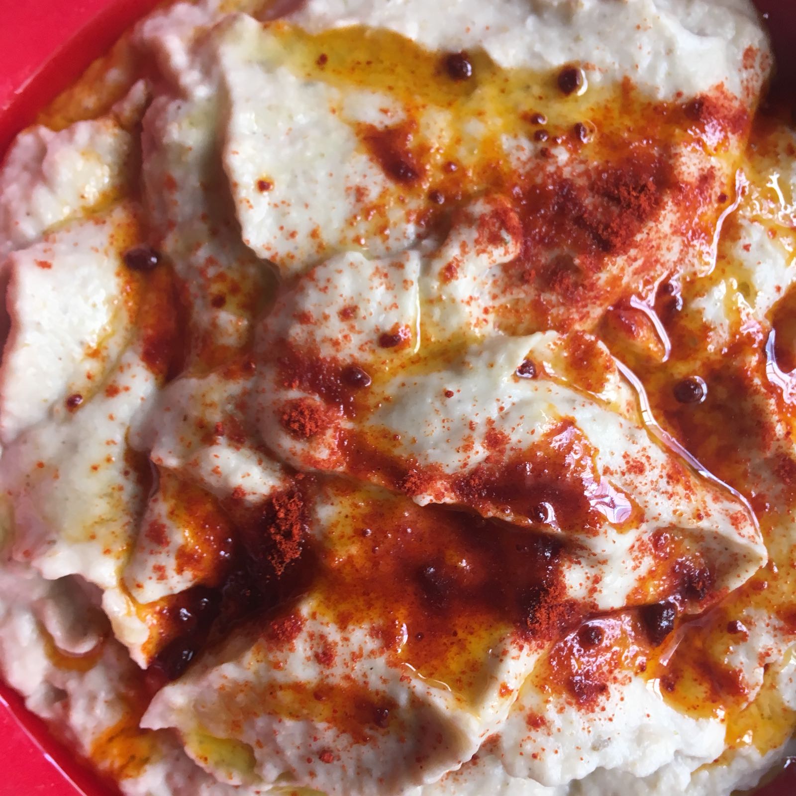 Para servir, de manera similar al hummus: Sirve con un chorrito de aceite de oliva por encima y añade pimentón (yo le puse pimentón picante de la Vera), y quedará ¡espectacular!