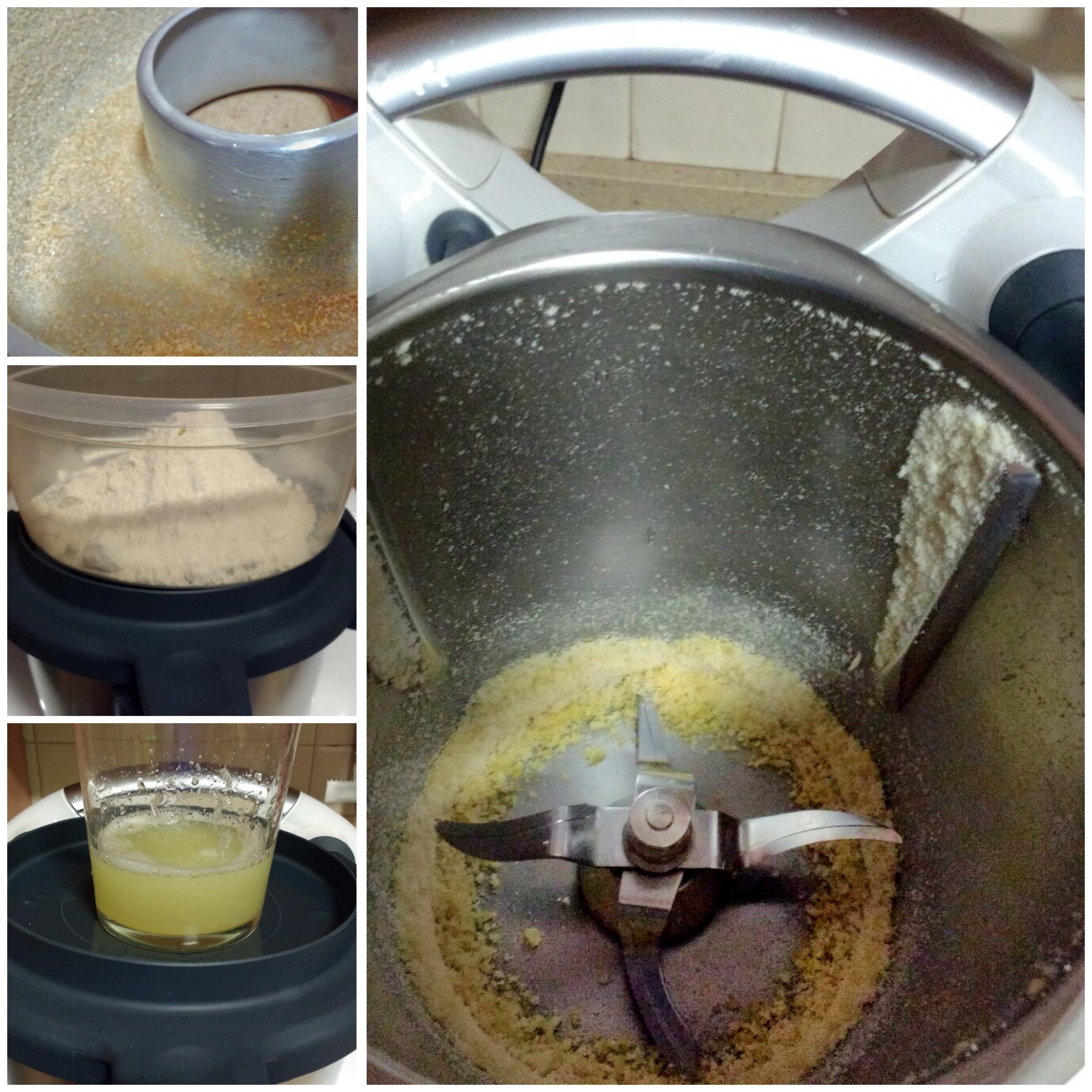 - Baja los ingredientes con la espátula al fondo del vaso, y añade la mantequilla, los huevos, y el sirope de ágave. Mezcla 30 seg/vel 3. Retira el cubilete, mezcla 1 min/vel 3, y ve añadiendo alternadamente la harina y la mezcla con la leche y zumo de limón. Termina de mezclar con la espátula, y vierte la masa en el molde. Lava el vaso.