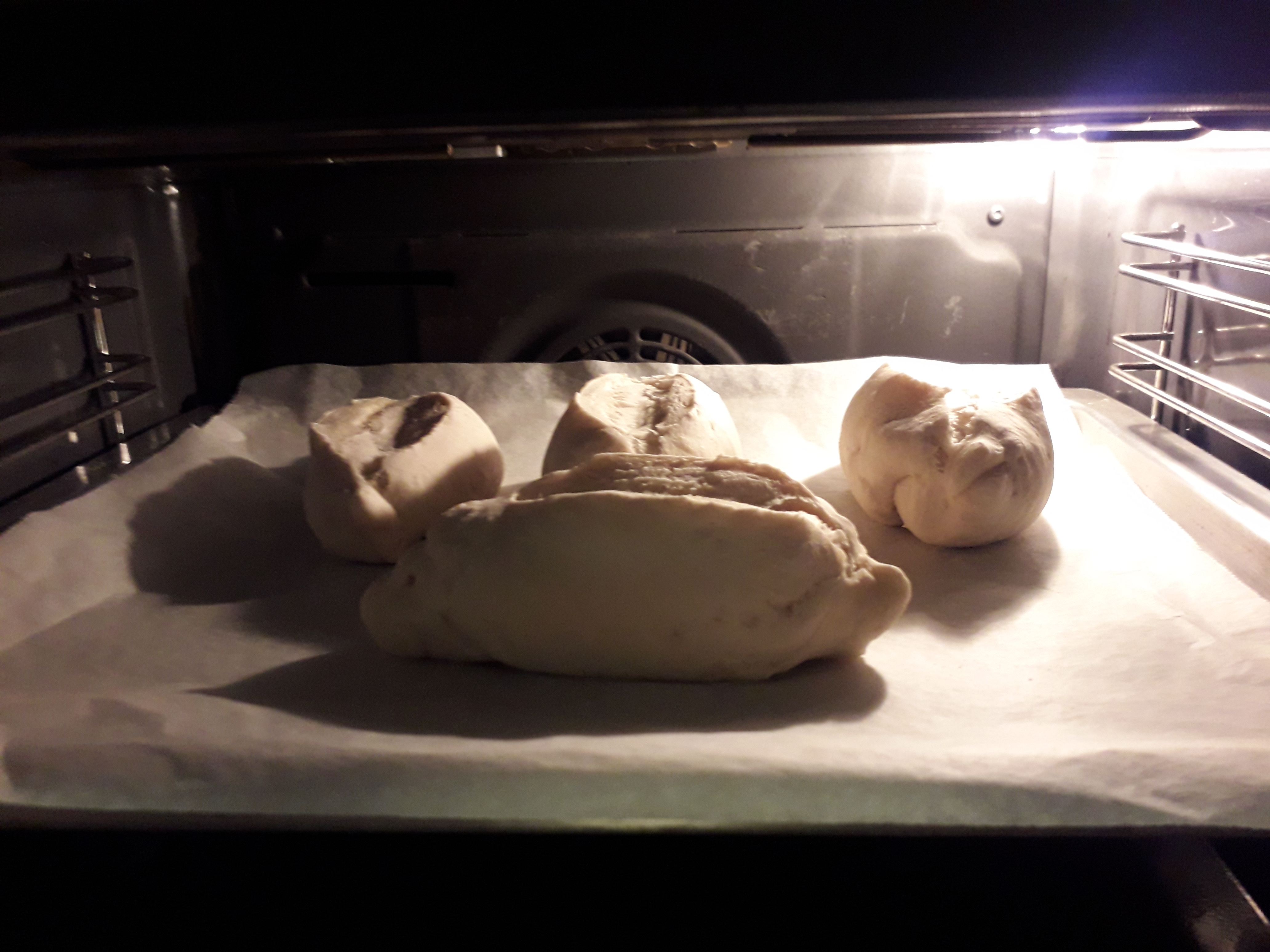 8. Una vez pasado ese tiempo, le haremos un corte de un 1cm mas o menos a lo largo, procurando que el corte sea todo por igual para que pueda subir la "panza" del bollo.
