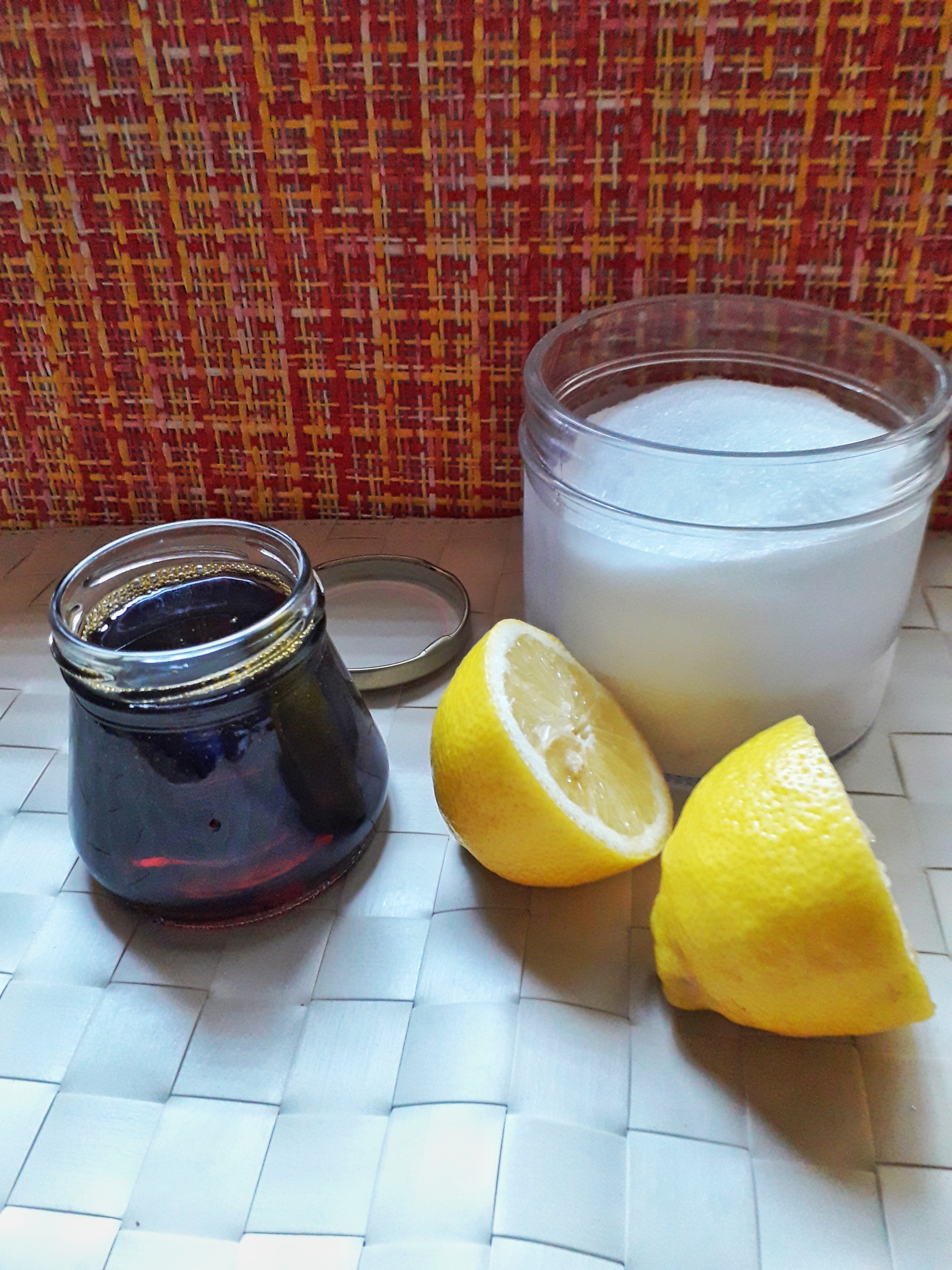 1°. Ponemos en el vaso el azúcar, 30 g de agua y el zumo de limón y sin poner el cubilete, iniciamos Puntos del azucar.