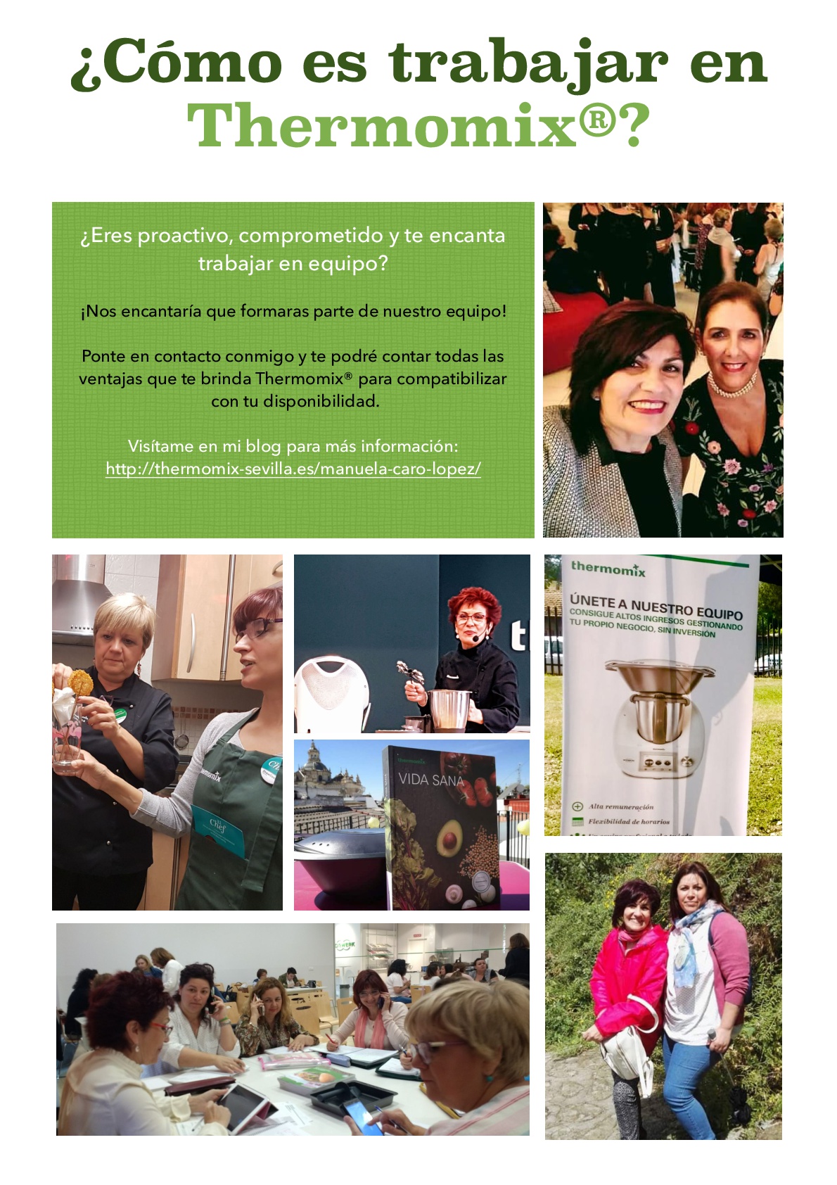 Si te gusta la cocina, y quieres tener más tiempo para ti y para tu familia, o tienes un restaurante y quieres sorprender a tus comensales con platos únicos y exquisitos, te ayudo a perfeccionarte en tu thermomix y con tus recetas. Y si quieres un trabajo con muy buenos incentivos, no lo dudes.