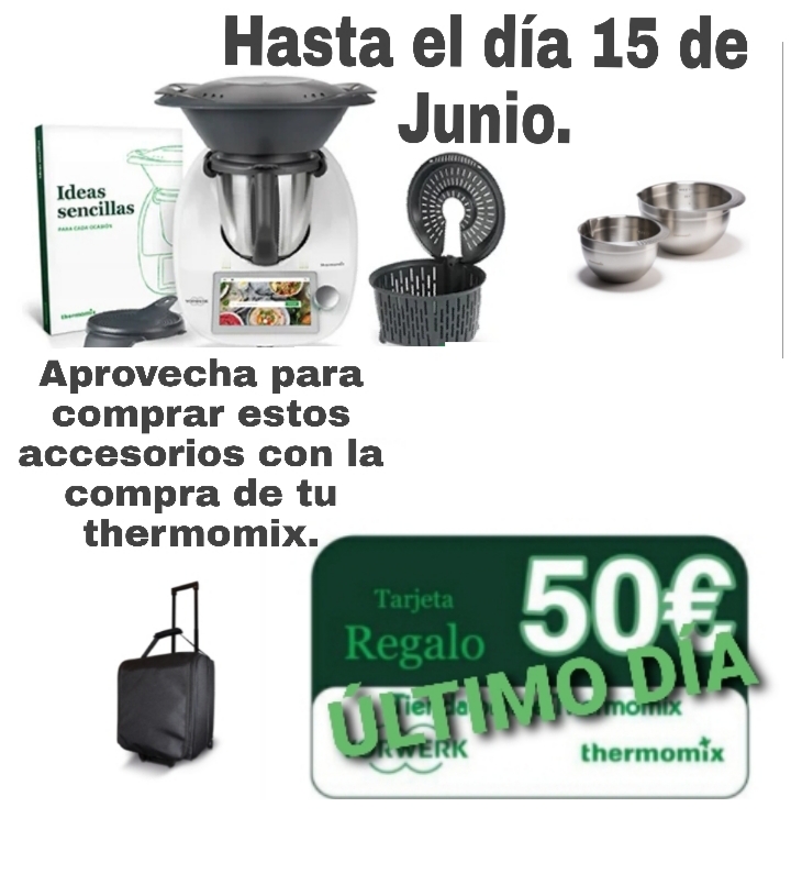 O por lo menos, mañana sería el último día que lo haría, porque me gustaría poder tener mi troley para trasladar mi thermomix, o mis bols para elaborar mis helados y muchos más accesorios que hay en la tienda online de thermomix donde poder elegir, y pagar con ese cheque de 50 euros.