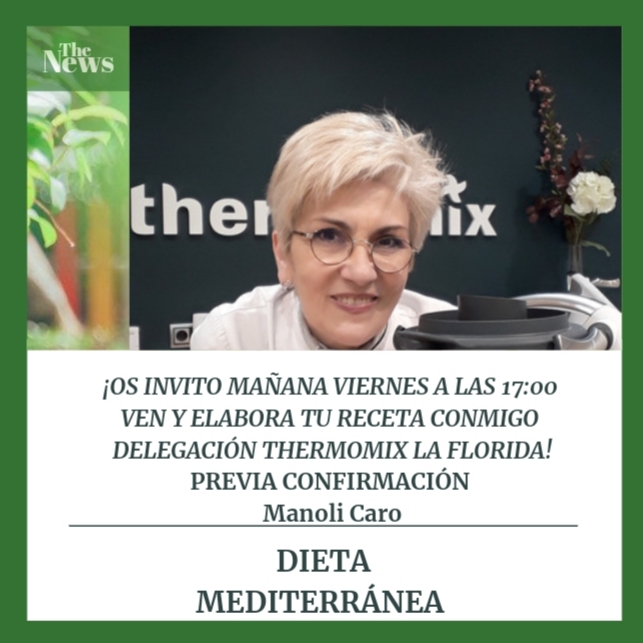 Este viernes día 16 de abril, podrás elaborar tu propio menú de dieta mediterránea en la delegación THERMOMIX LA FLORIDA, junt@s podremos disfrutar de esa tarde y con todas las medidas de seguridad!