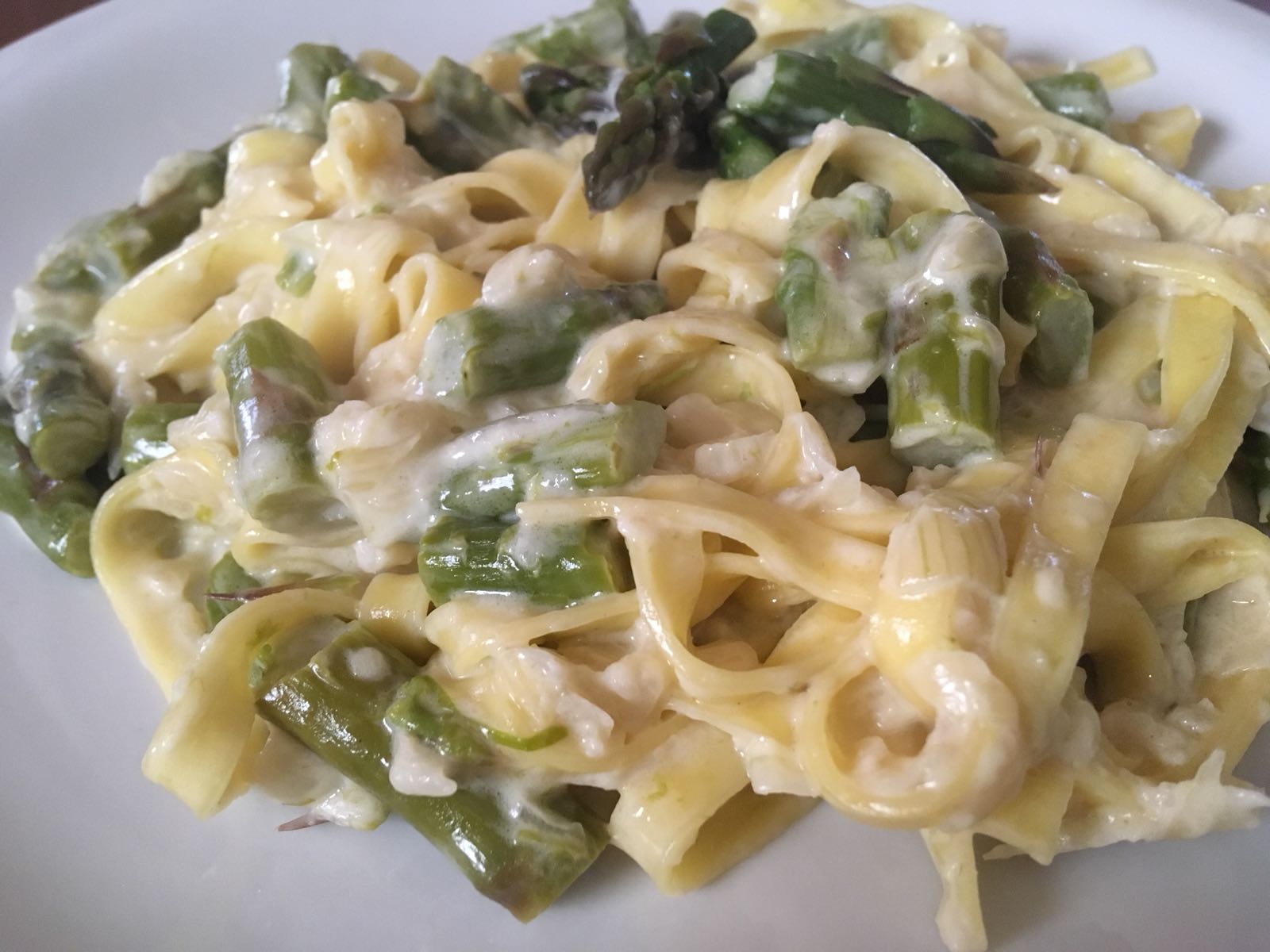 Hola thermobloggers! Os presento una receta ESPECTACULAR... y con pasta fresca, ya es sublime: Espaguetis a la carbonara con espárragos en Thermomix.