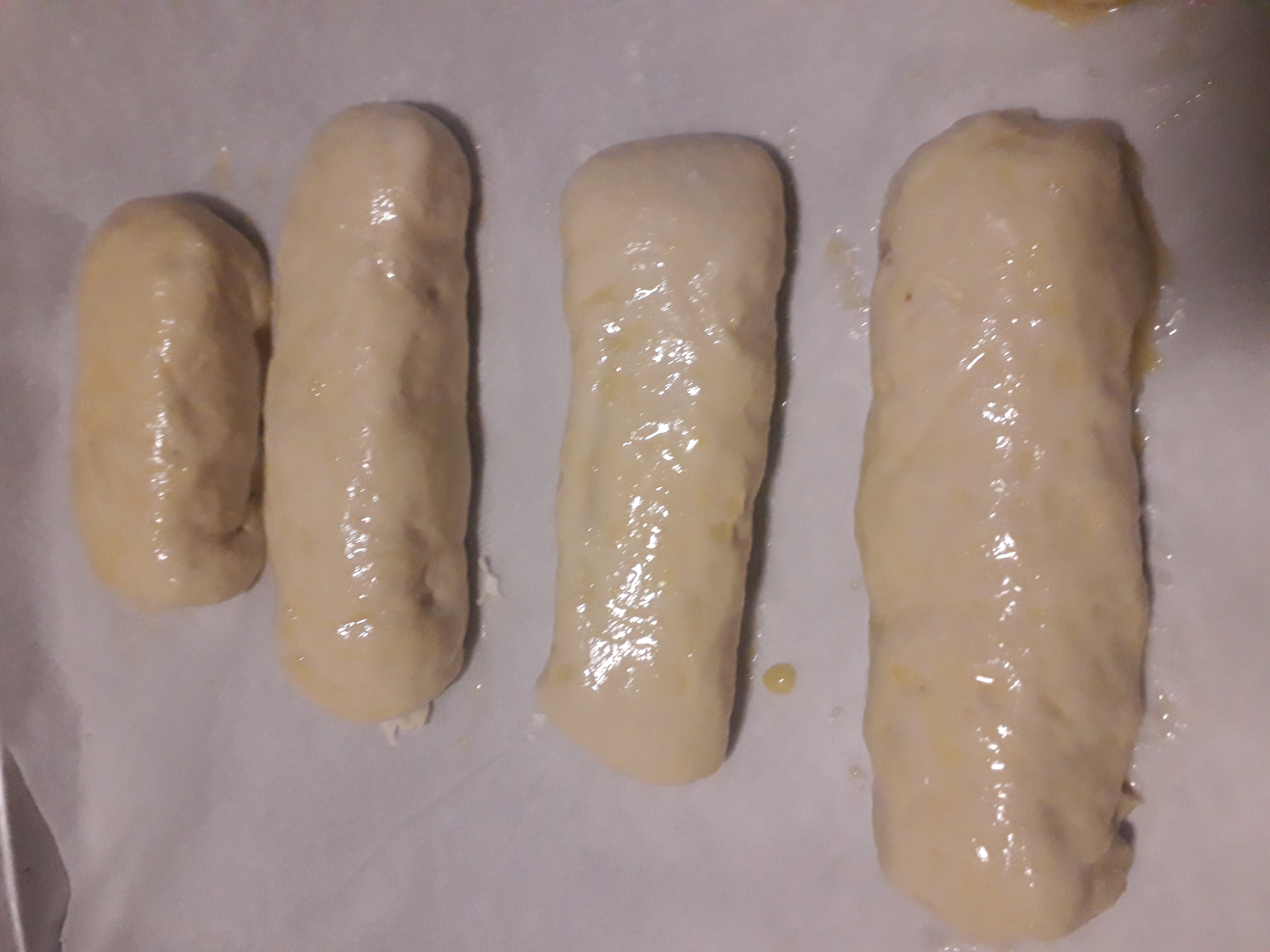 Pintamos con huevo la superficie de arriba.