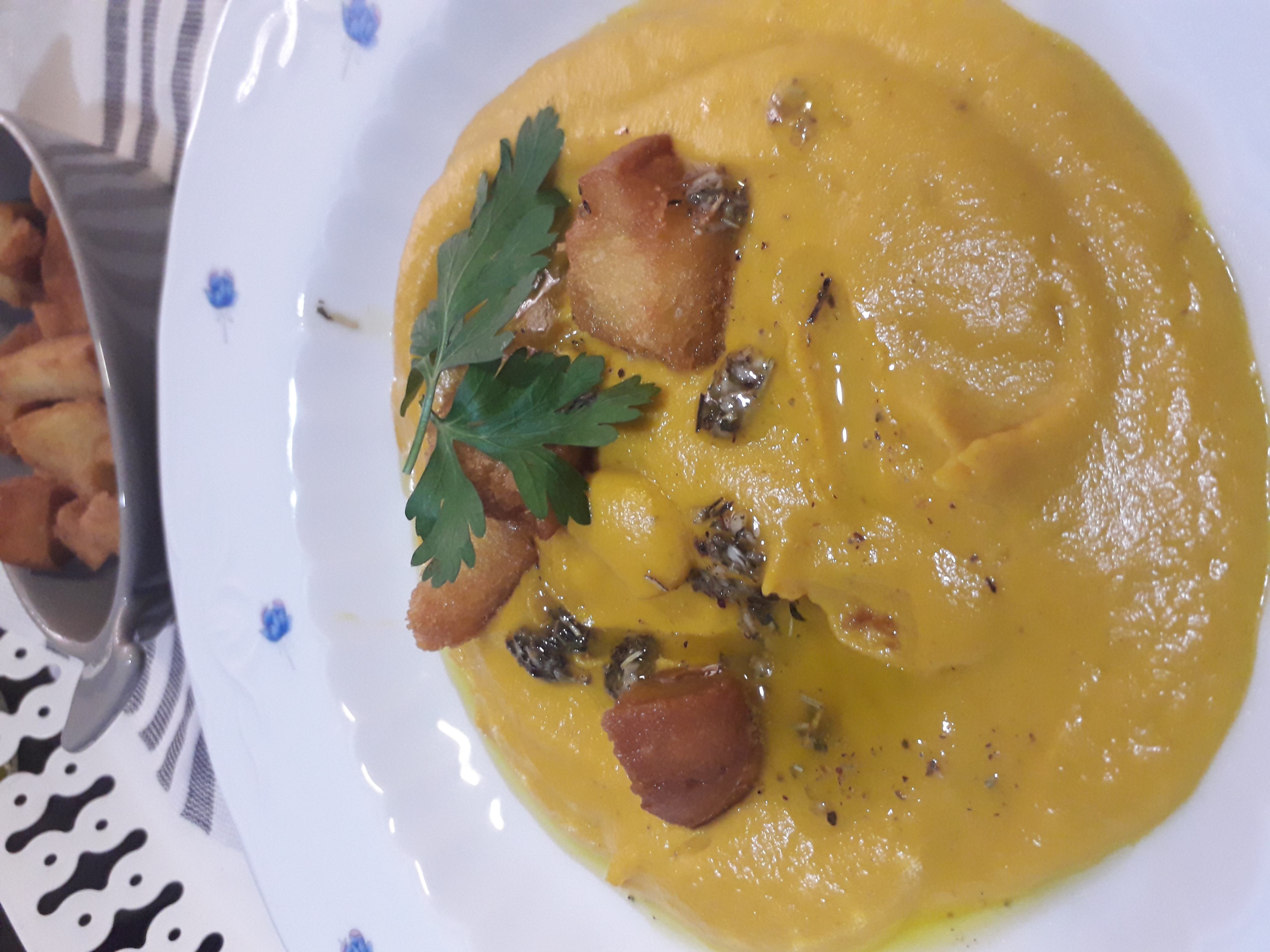 CREMA DE ZANAHORIA CON APIONABO Y ACEITE DE HIERBAS
