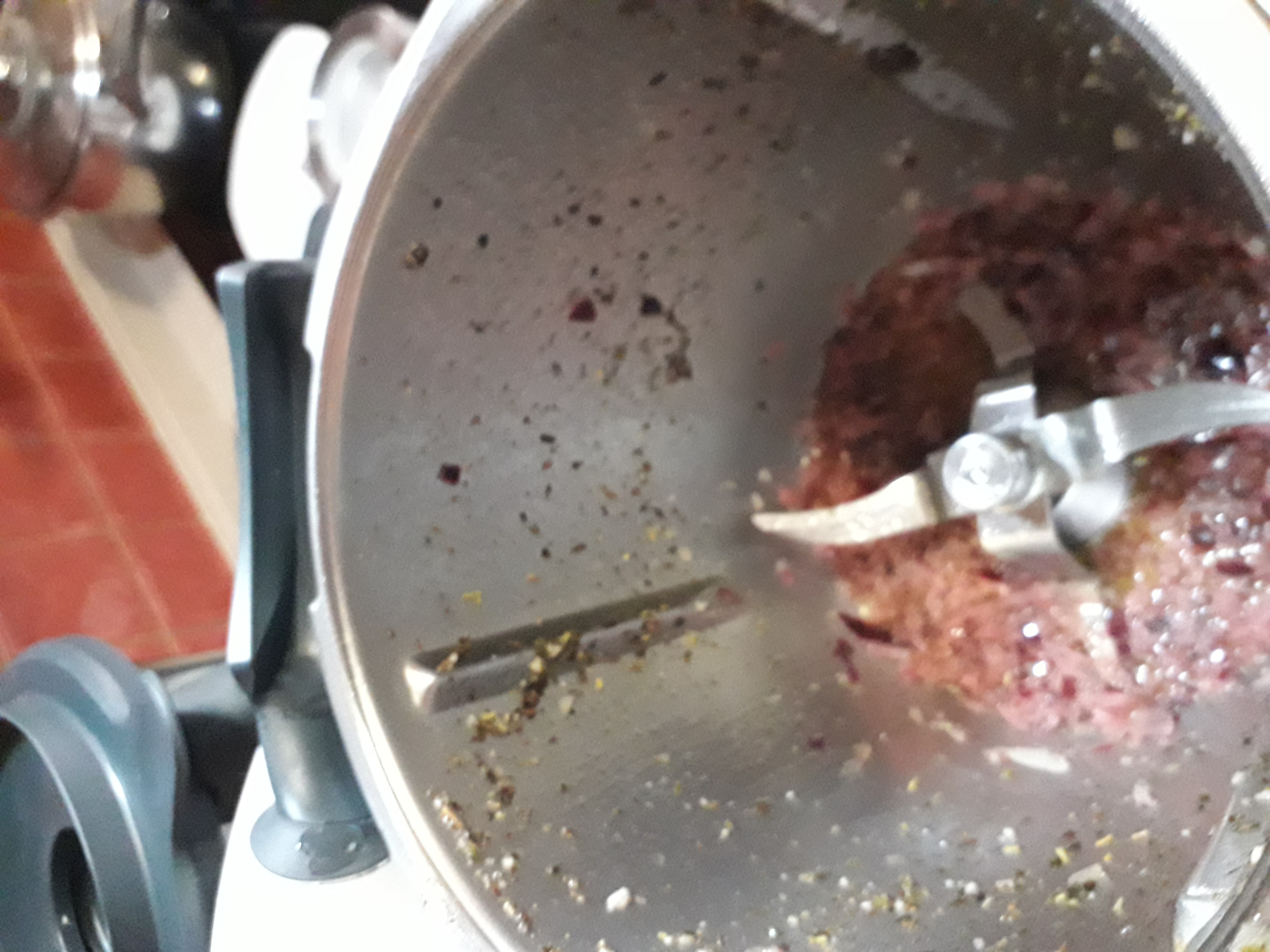 Ponga en el vaso las hierbas provenzales y el ajo y pique 3 seg/vel 7. Con la espátula, baje los ingredientes hacia el fondo del vaso.