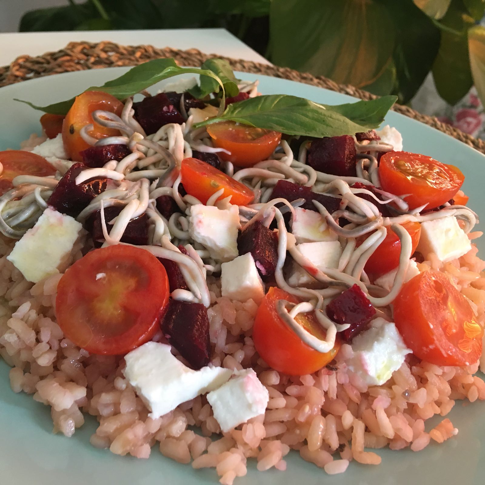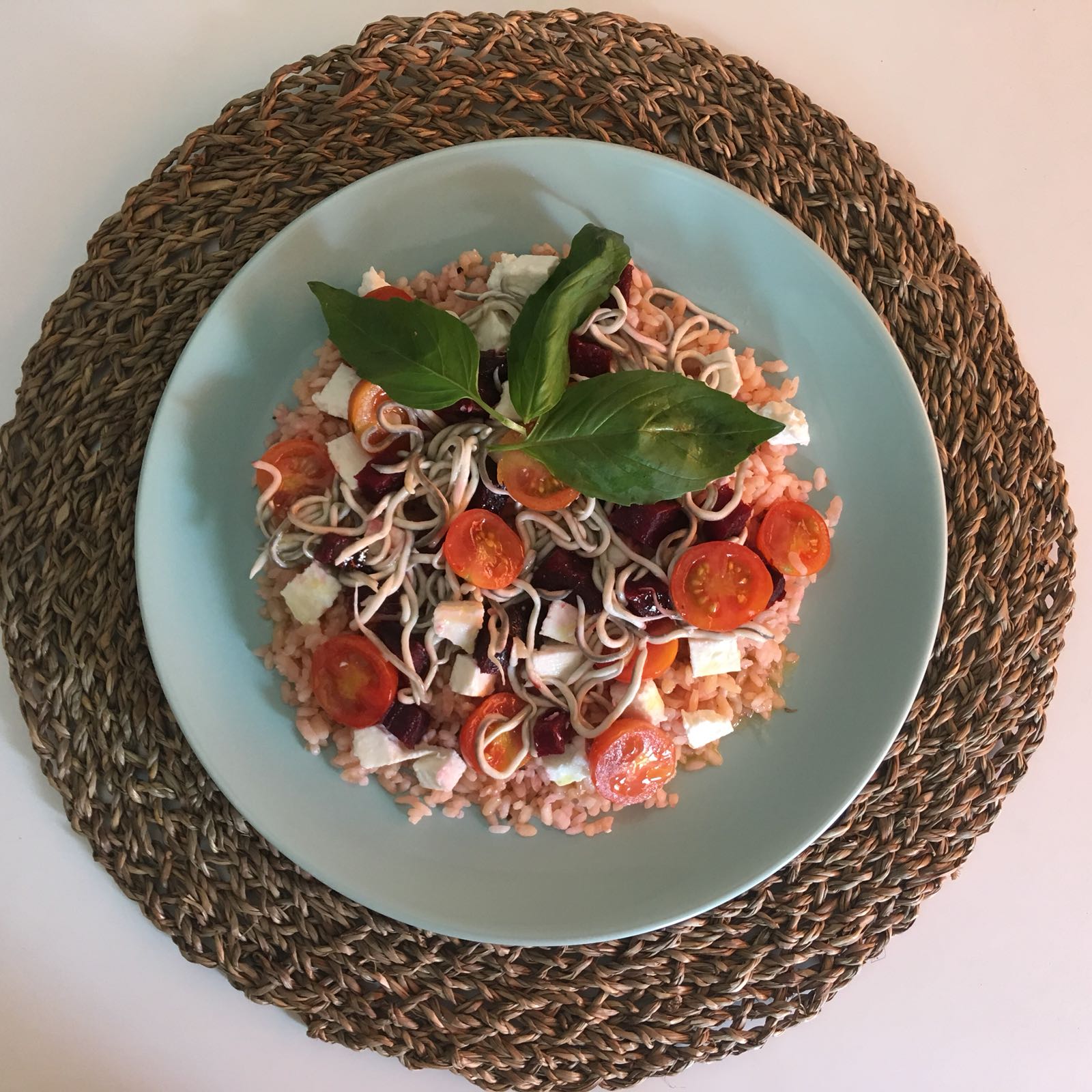 Ensalada de arroz de remolacha con gulas