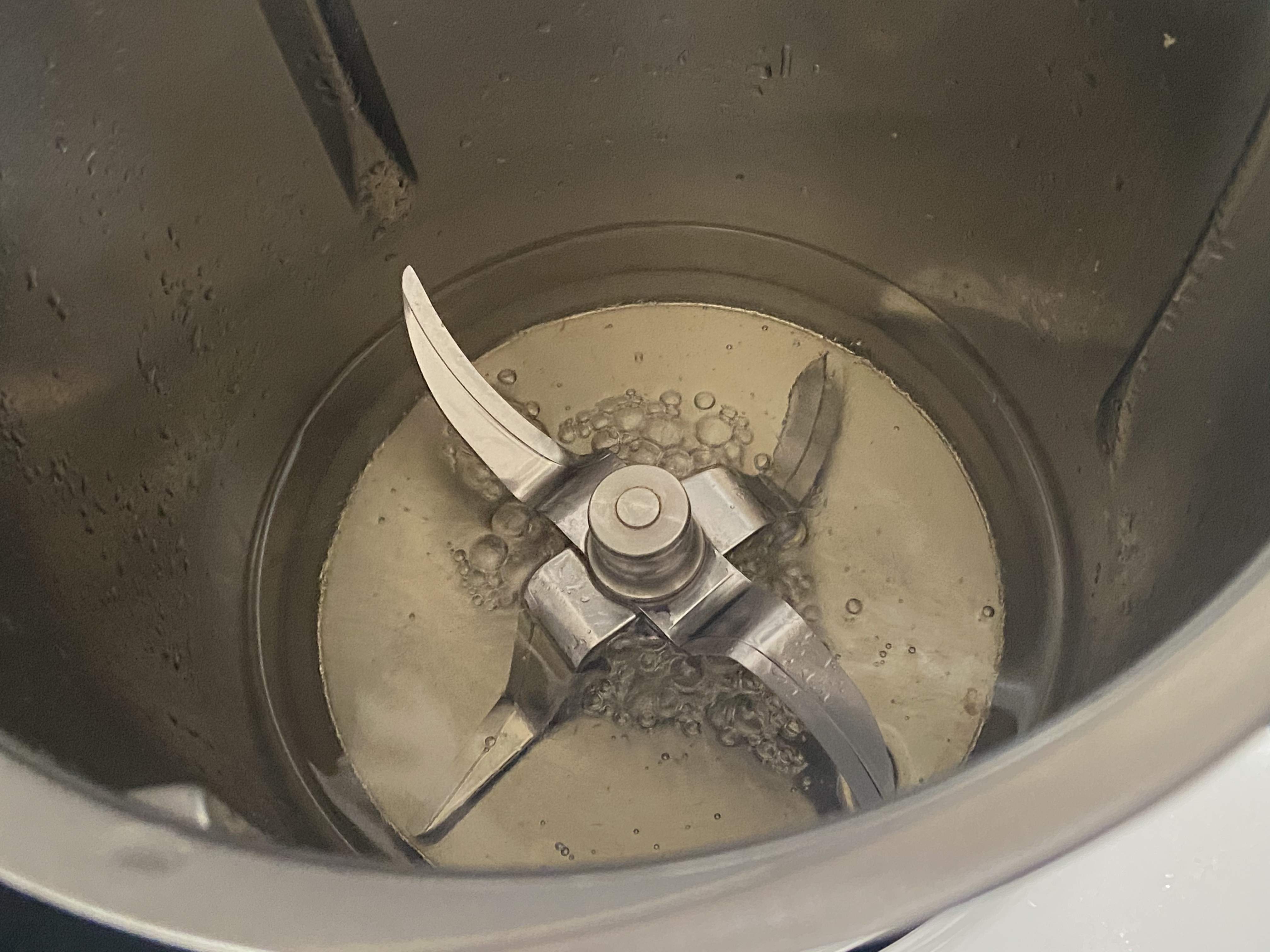 - Cuando esté templado. Comienza a colocar la mariposa en las cuchillas, añade el huevo entero y las yemas. Programa 1 min. vel.3., y ve echando por la abertura del cubilete el almíbar poco a poco.