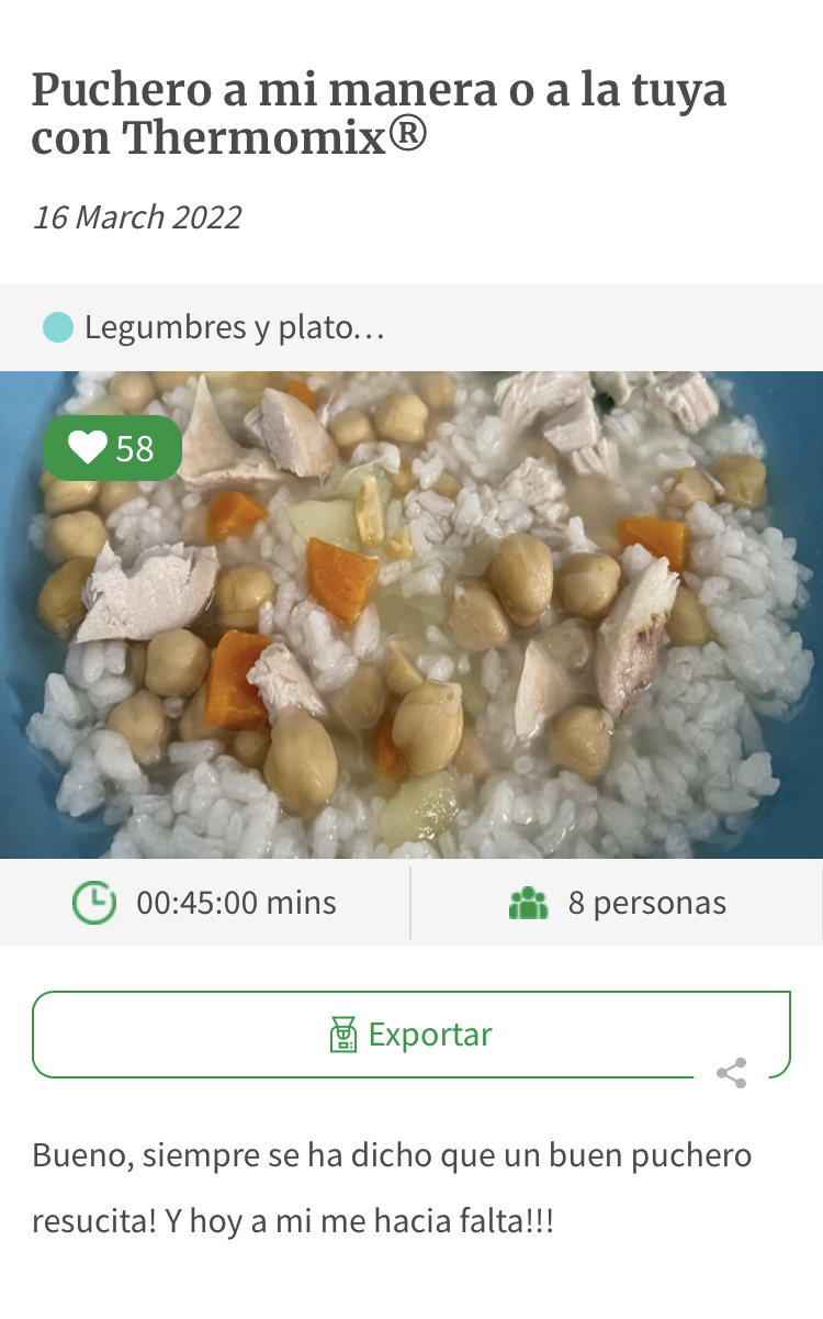 Comparte tus mejores momentos con cookidoo®: Puchero a mi manera con Thermomix”
