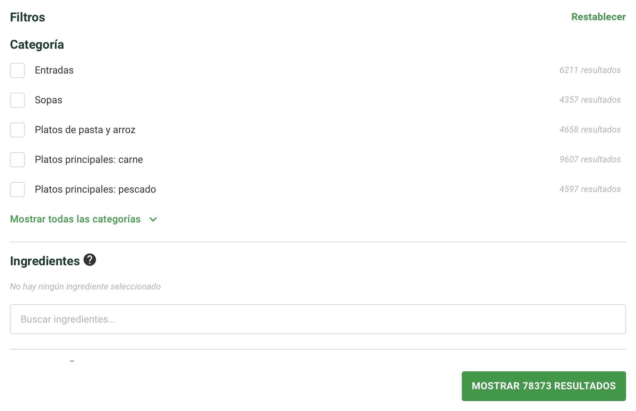 la facilidad de encontrar recetas por filtros súper prácticos: