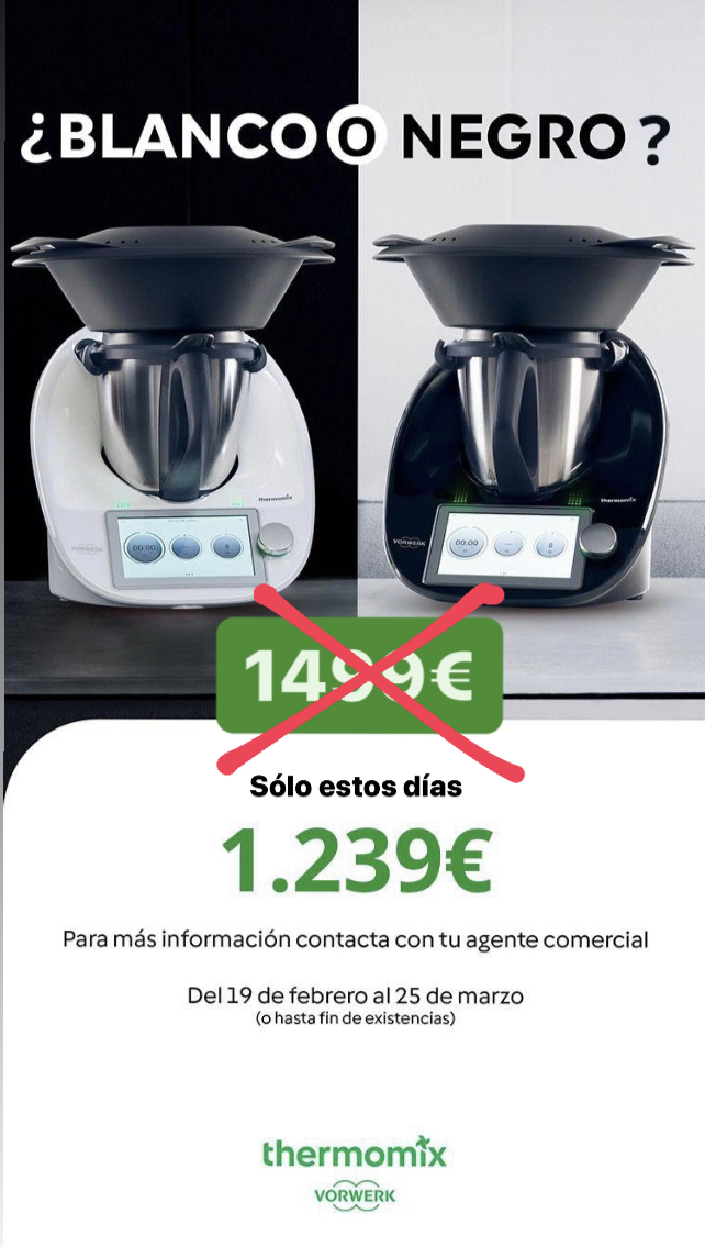 El precio actual del THERMOMIX es de 1499€ y solo en estos días tendrás opción de tener el nuevo modelo de Thermomix por 1239€! (DESCUENTO DE 260€ en Thermomix)