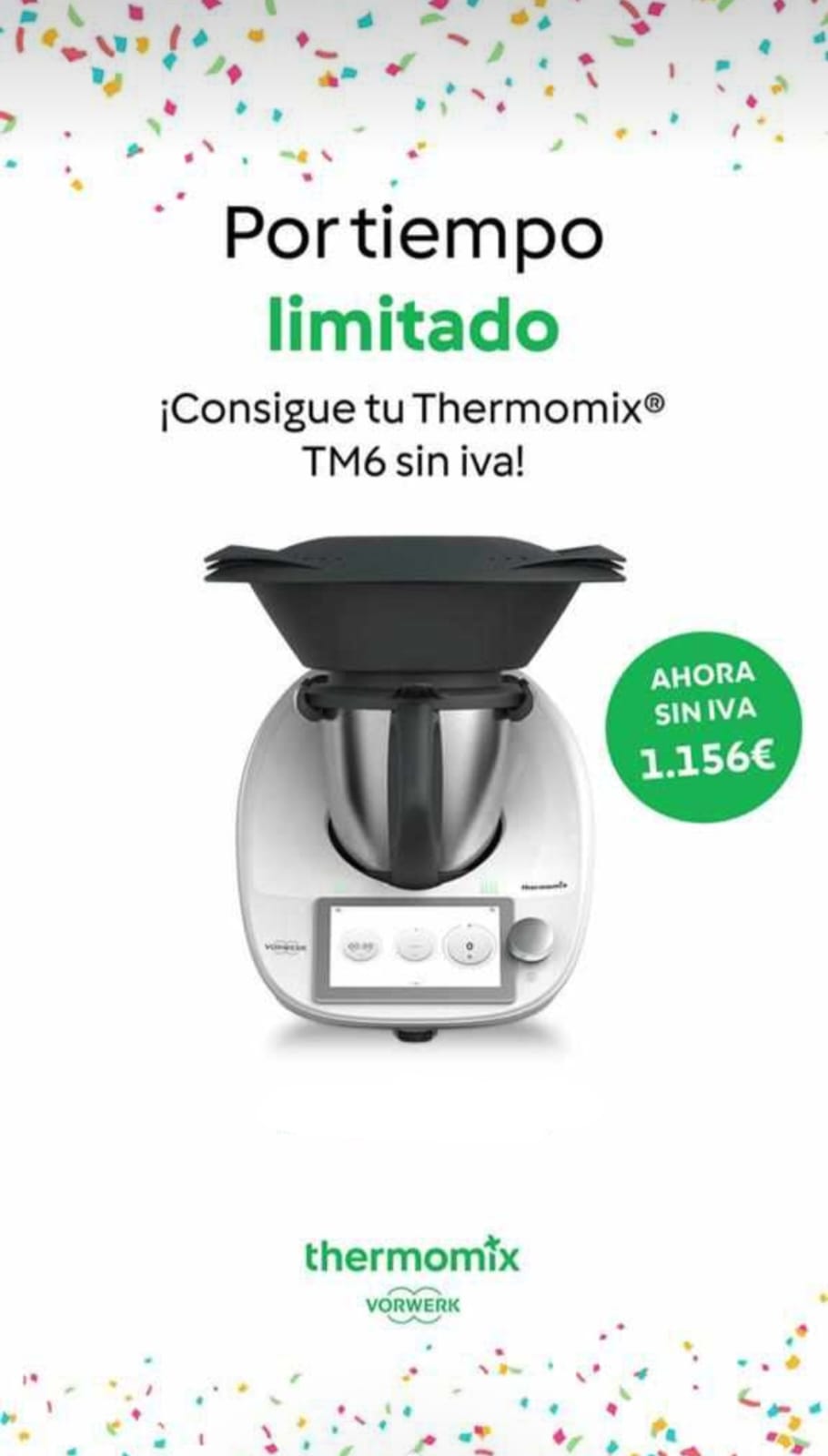 Lda. en Publicidad y ahora... JEFA DE EQUIPO DE THERMOMIX y Agemte Thermomix EN SEVILLA. Te ayudo a entender cómo el Thermomix te va a cambiar la vida! Para comprar Thermomix en Sevilla, aqui tienes tu comercial thermomix en sevilla! Comer mejor, más saludable, más variedad... e intento dar trucos y recetas originales! ¿Quieres comprar el thermomix Comprar Thermomix a un clic ? Cuenta conmigo! Siempre actualizada la ultima promoción thermomix y renove thermomix sevilla Dale a clic y te lleva a mi WhatsApp