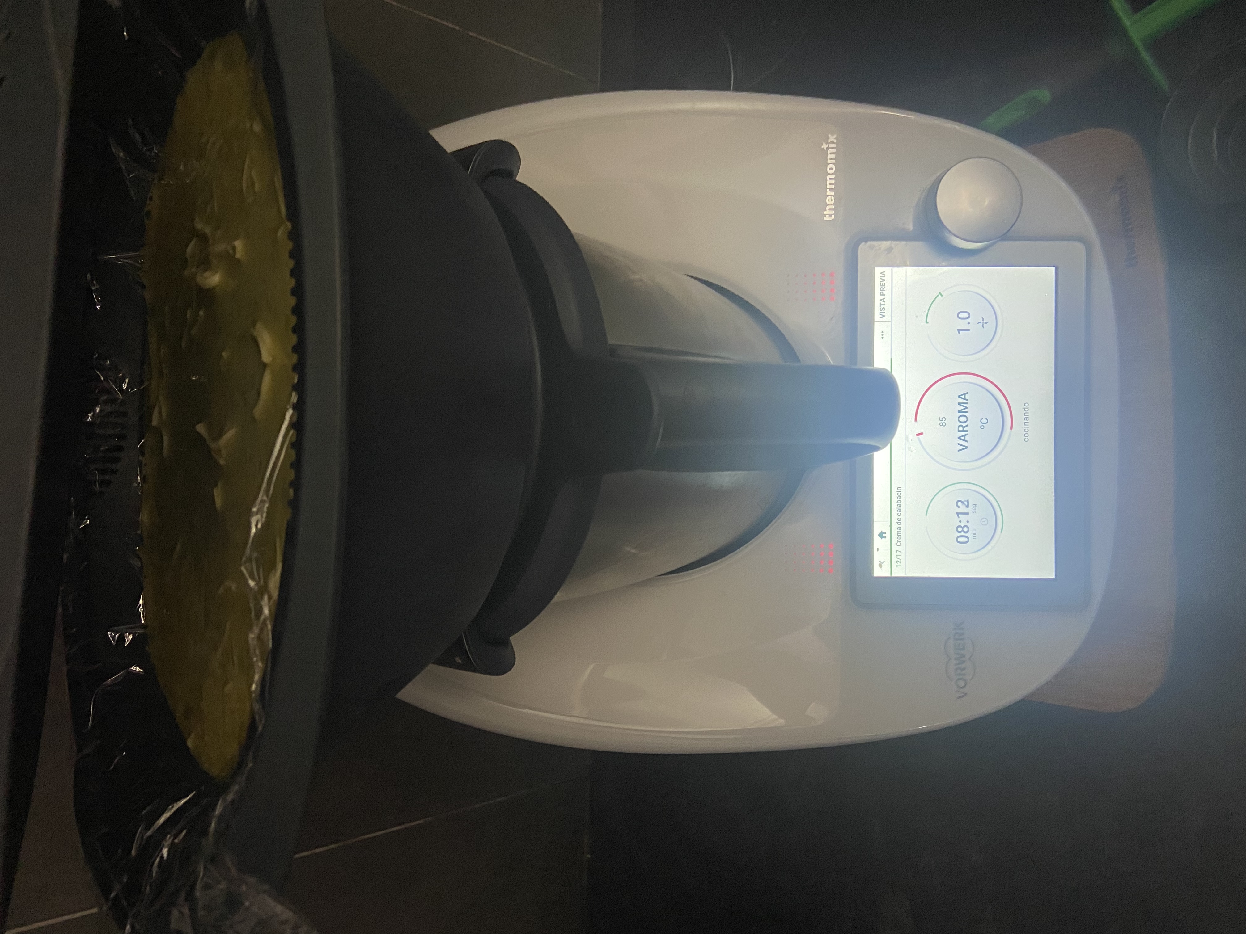 - Coloca el varoma completo sobre el Thermomix y cocina unos 8 min