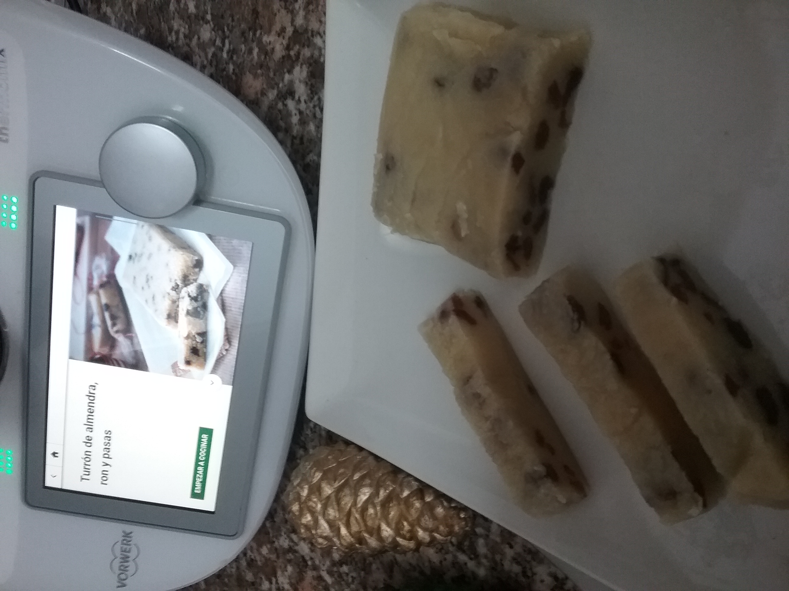 Hoy vamos a hacer un turrón de almendras , ron y pasas .