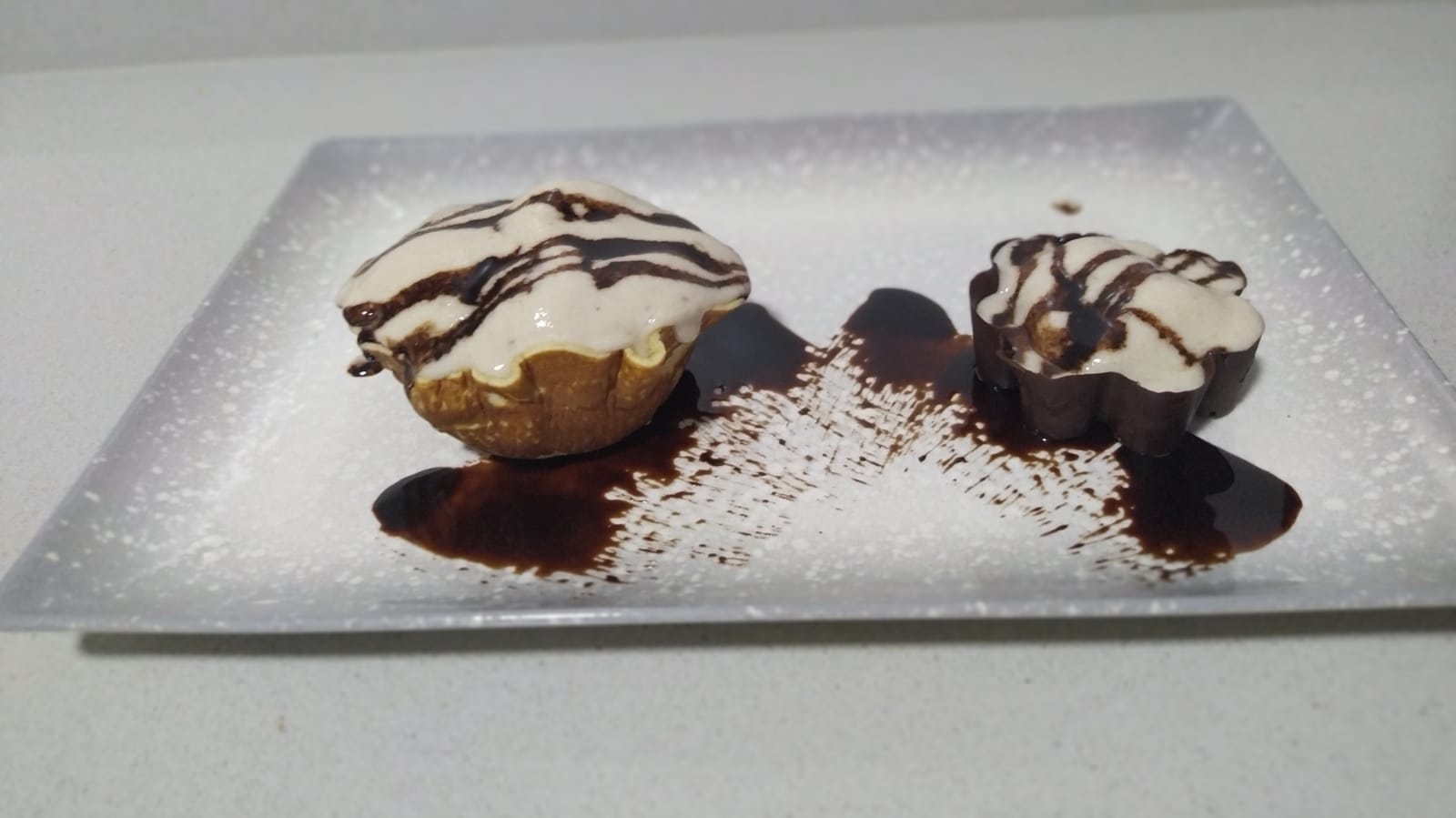 - Con unos moldes de magdalenas o de flores (en mi caso) de silicona, pintar bien las paredes y el fondo de chocolate fundido y llevar al congelador para que cojan consistencia.