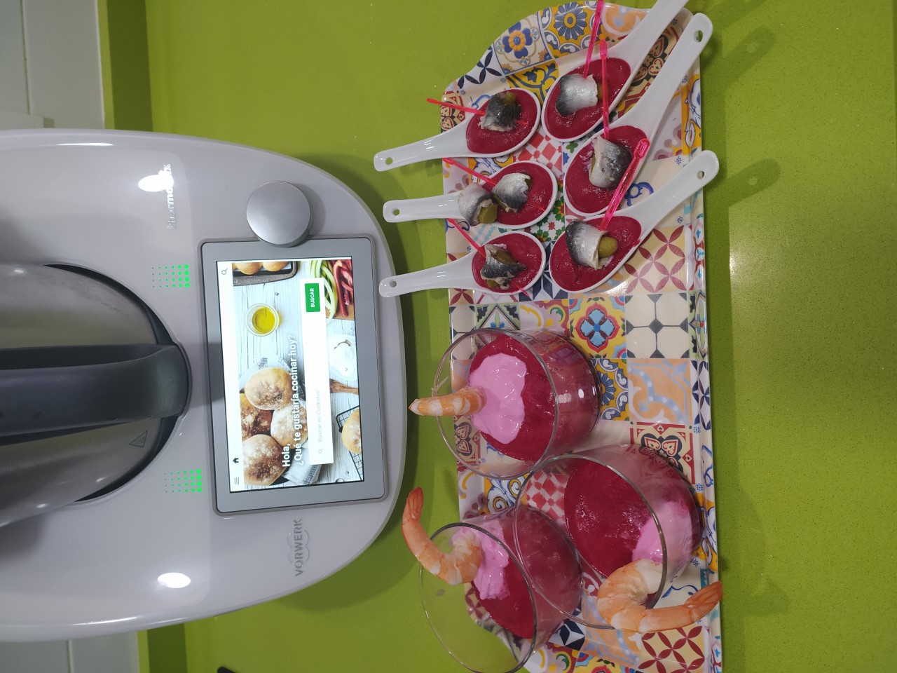 ESPUMA DE REMOLACHA CON LANGOSTINOS EN SALSA CARDENAL