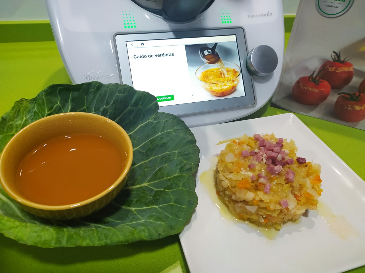 Si solo necesita el caldo, puede aprovechar las verduras sofriendo unos dientes de ajo con unos taquitos de jamón y 50 g de aceite de oliva virgen extra. Para ello, vierta estos ingredientes en el vaso y programe 7 min/100°C/vel 1. Vuelque sobre las verduras y sirva.