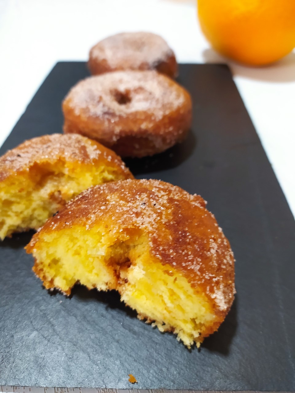 7º Fríe en aceite hasta que estén dorados, escúrrelos sobre un papel absorbente, y rebózalos por el azúcar y la canela.