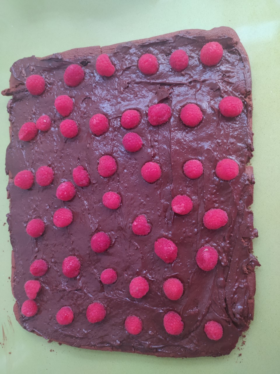 7º Extiende la crema sobre el bizcocho, repartir las frambuesas y enrollar.