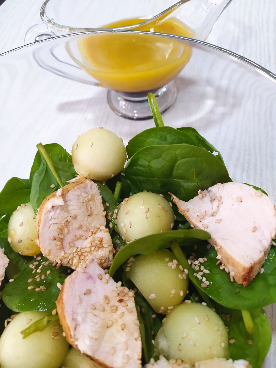 ENSALDA DE ESPINACAS, POLLO Y MELÓN
