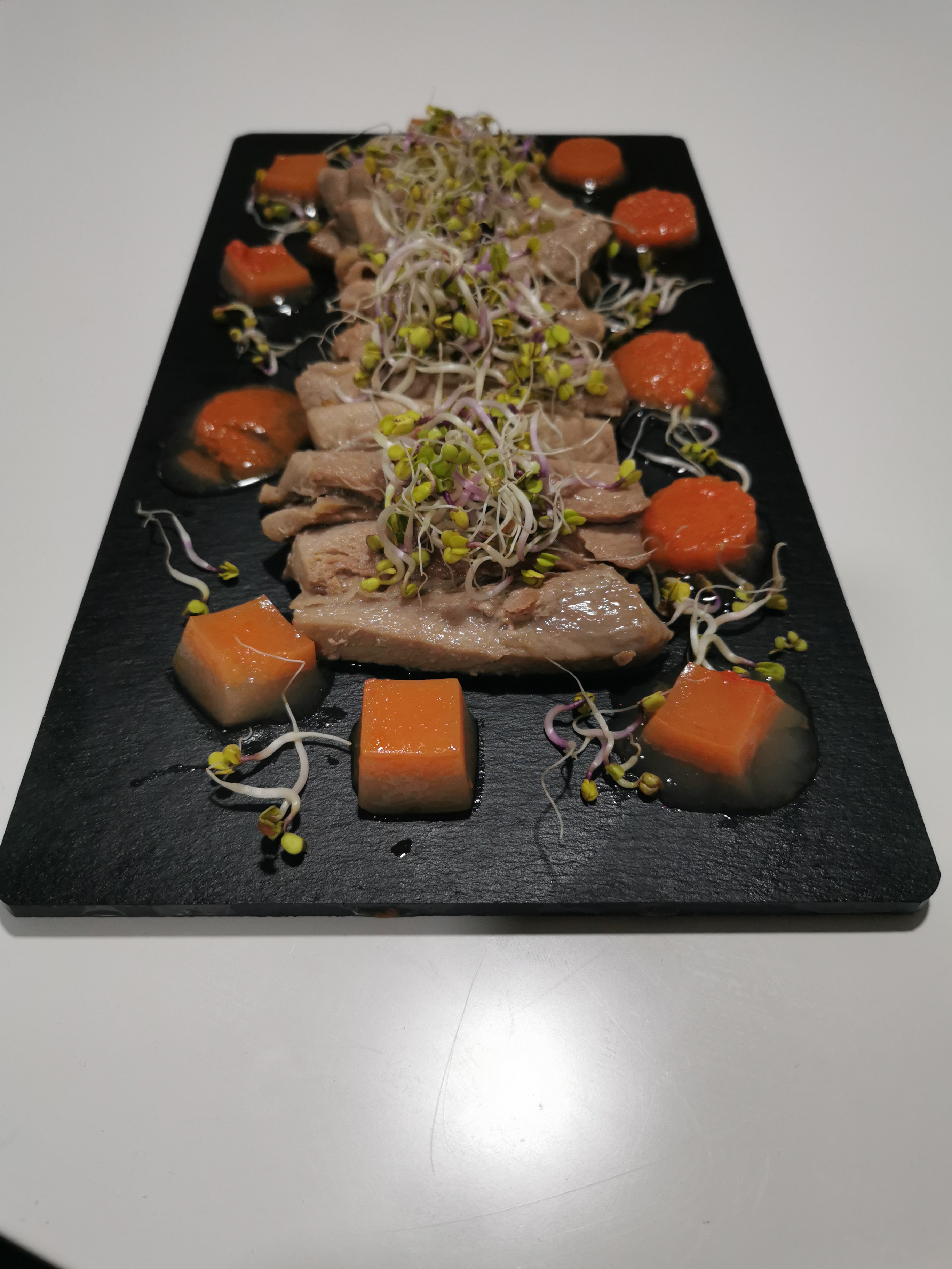 Hoy os traigo una ventresca de atun con gelatina de tomate, que esta deliciosa, y facil de hacer ya que con la cocina guiada de Thermomix todo es muy fácil.