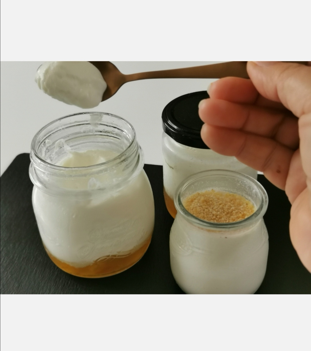 Es muy fácil, los tarros muy limpios los he hervido y solo lleva un yogur natural, 800 g de leche fresca, 60 g de azucar, y batir en Thermomix, pasar los tarros al varoma y progranar 10 horas modo fermentar, los he puesto de noche y por la mañana perfectamente cuajados como nos gustan.