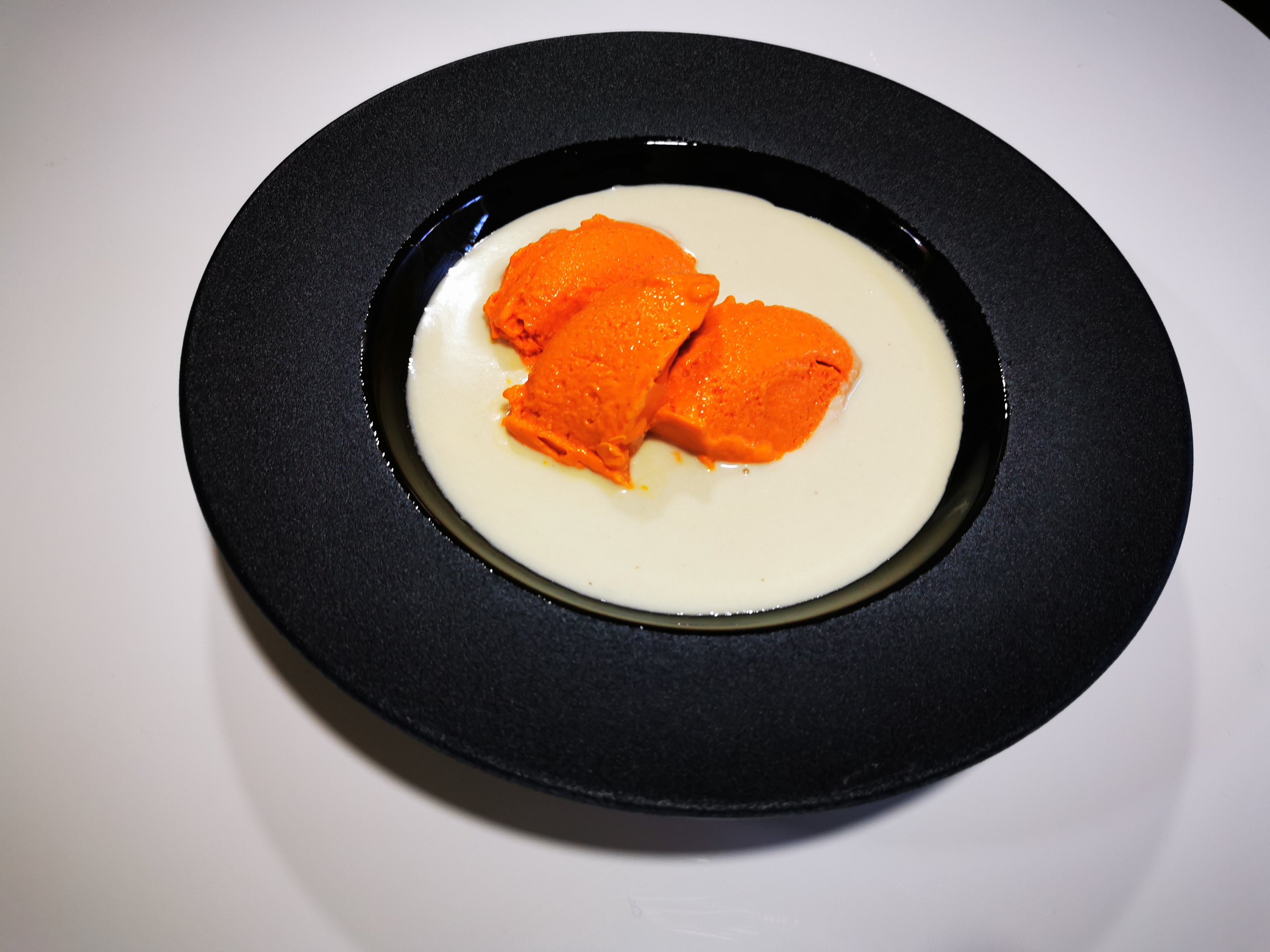 Hoy traemos una receta muy rica hecha en Thermomix en parte muy de última. Se trata de un ajo blanco con un helado de pimientos del piquillo confitados.