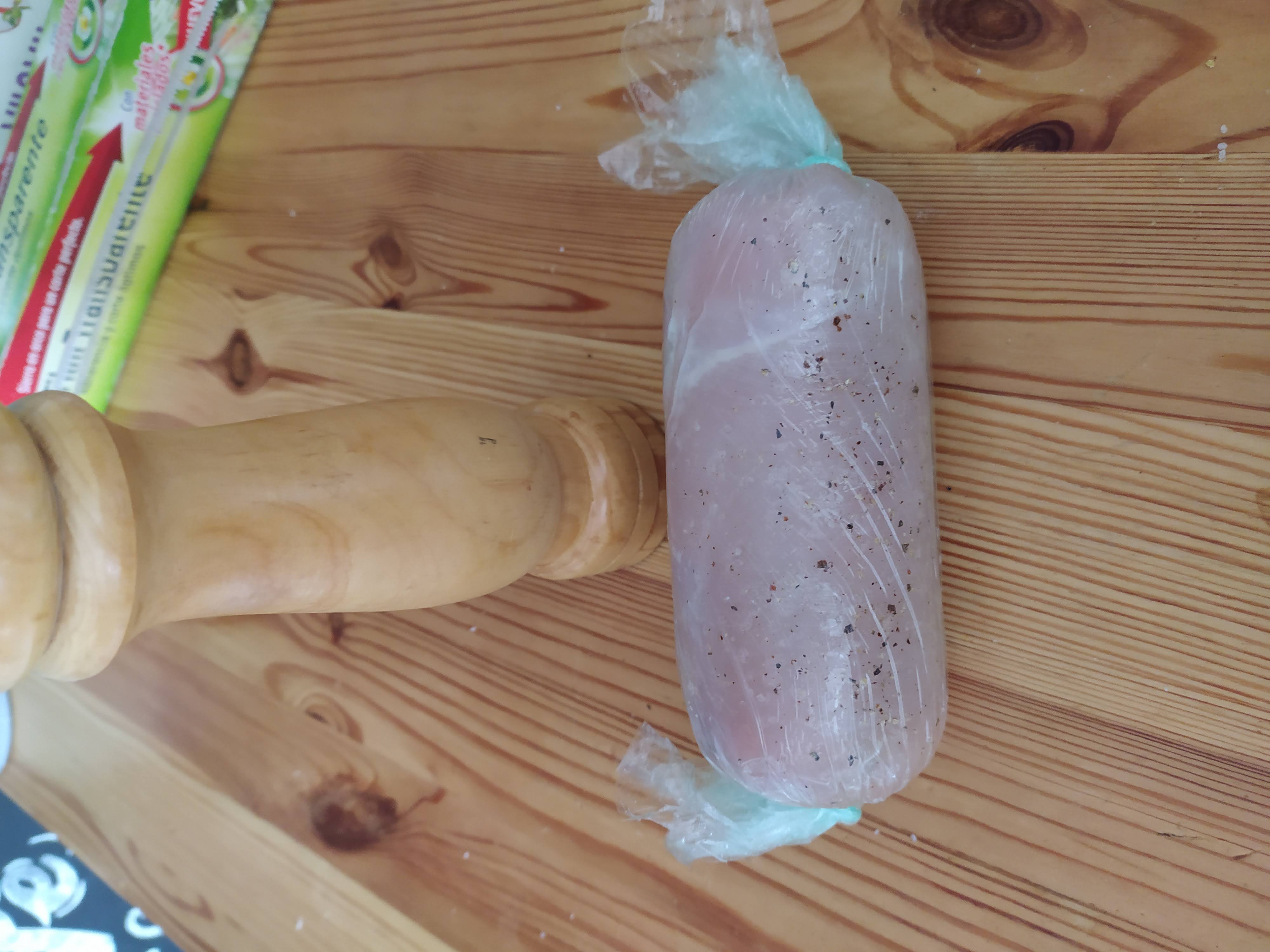 Enrollamos bien apretado con ayuda del film, y formamos un rollito.